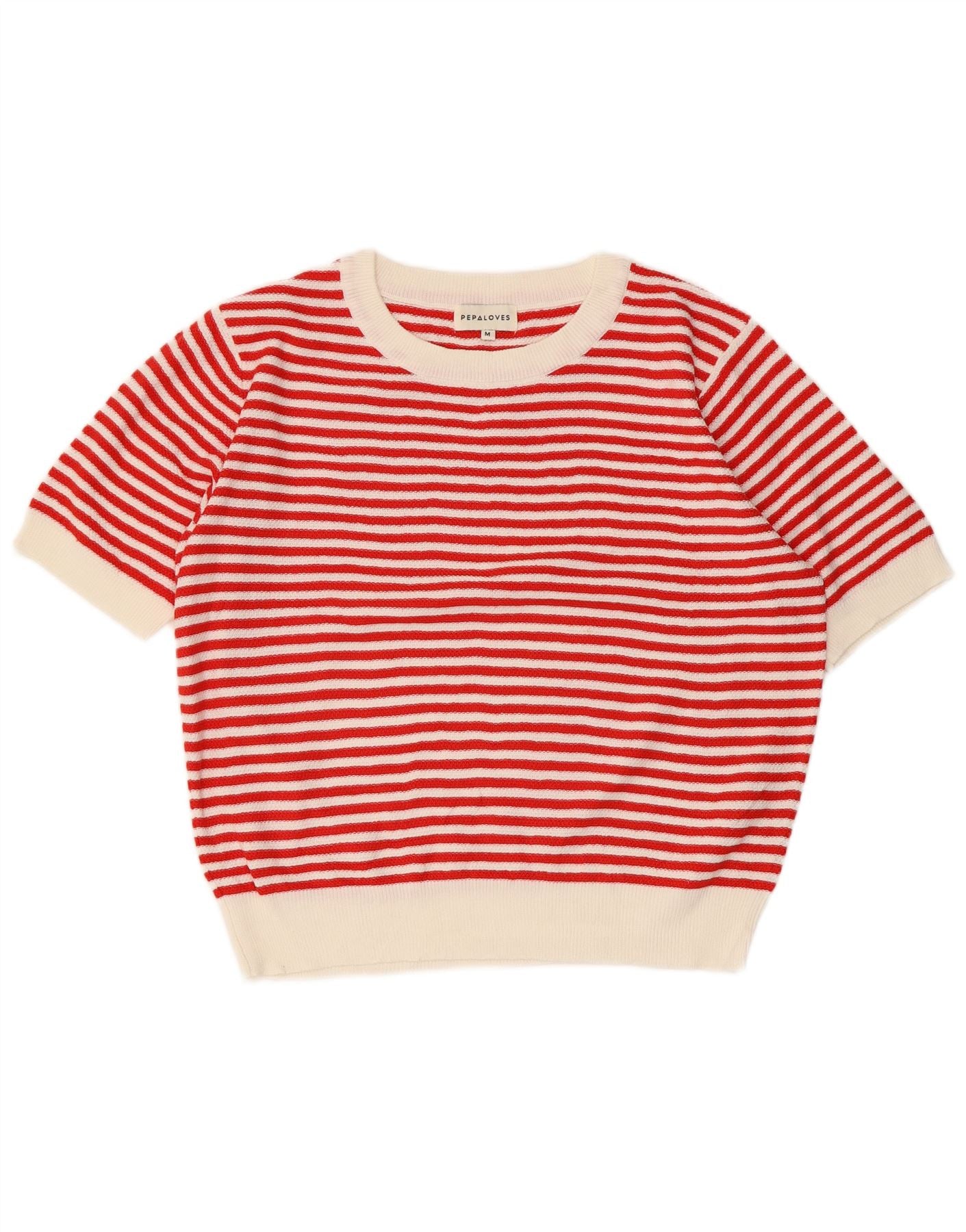 Maglione maglione girocollo da donna PEPALOVES UK 14 a righe rosse medie