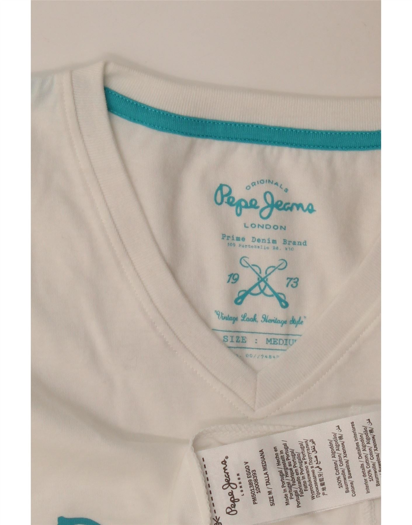 - Descrizione dell'IA: Questa maglietta grafica da donna di Pepe Jeans è realizzata in morbido jersey bianco di cotone al 100%. Presenta un classico scollo a V e comode maniche corte. La vestibilità regolare offre una silhouette rilassata ma lusinghiera. Un prominente logo grafico Pepe Jeans London adorna la parte anteriore, aggiungendo un tocco distintivo. Questo modello di maglione è leggero e offre un comfort eccellente da indossare tutti i giorni.