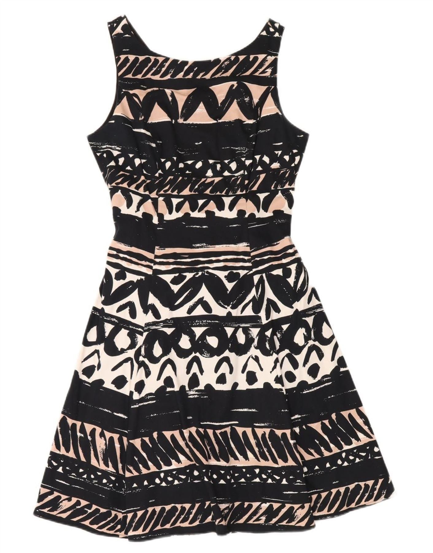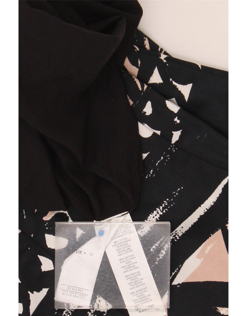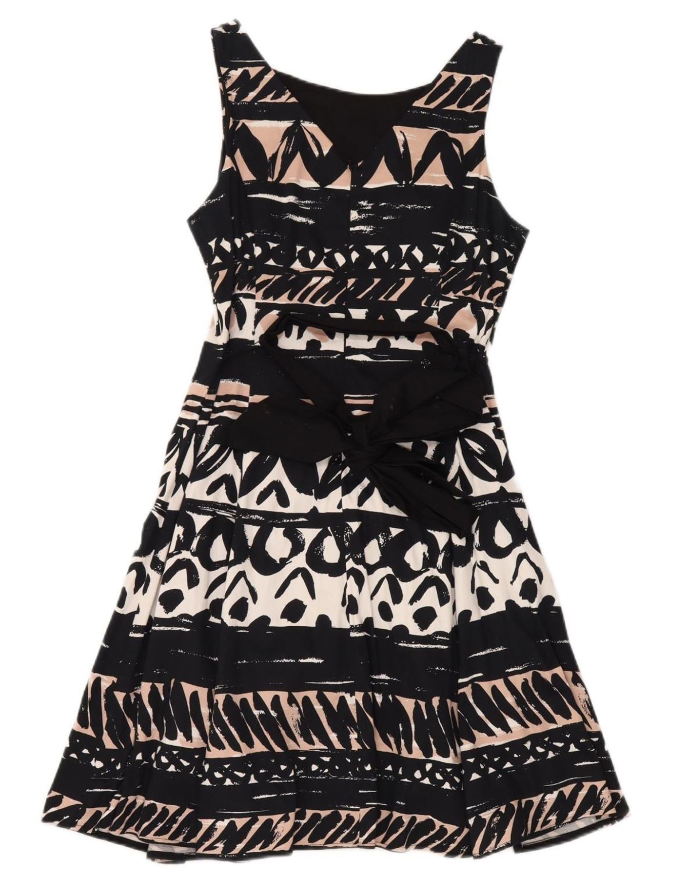PER UNA Womens Sleeveless A-Line Dress UK 12 Medium Black Geometric Cotton