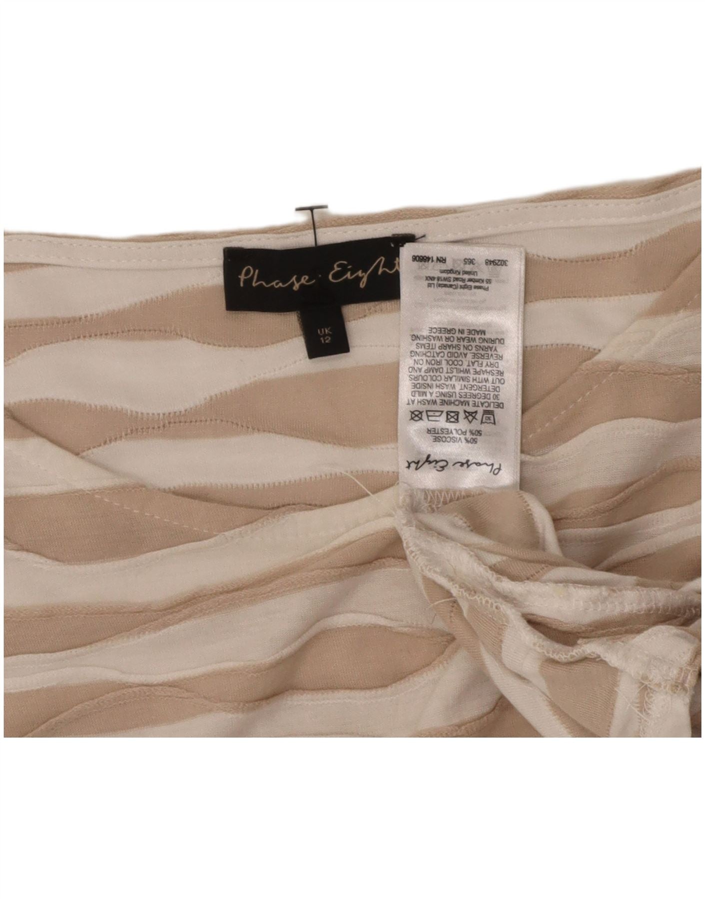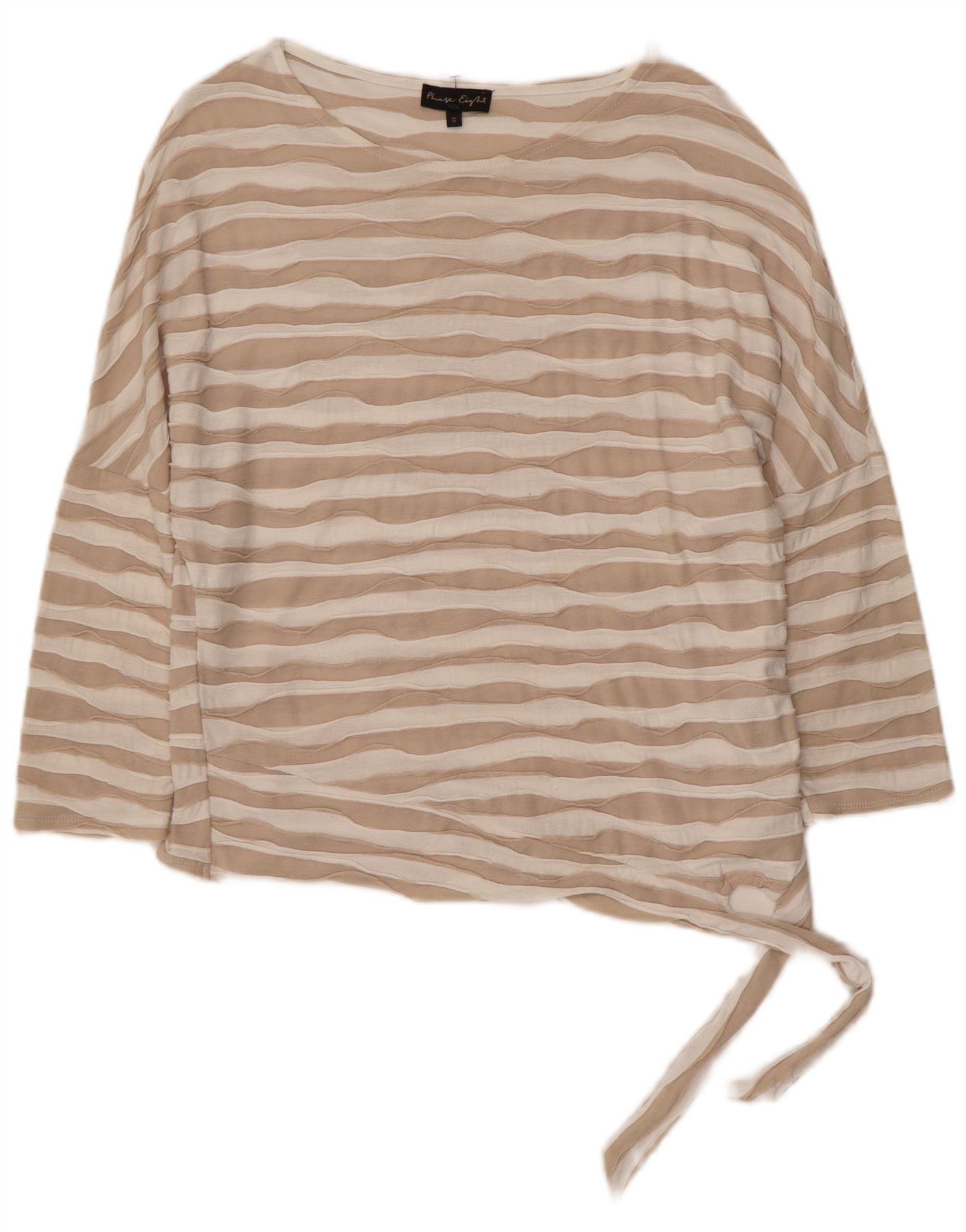 PHASE EIGHT Womens Top 3/4 Sleeve UK 12 Medium Beige Striped Viscose