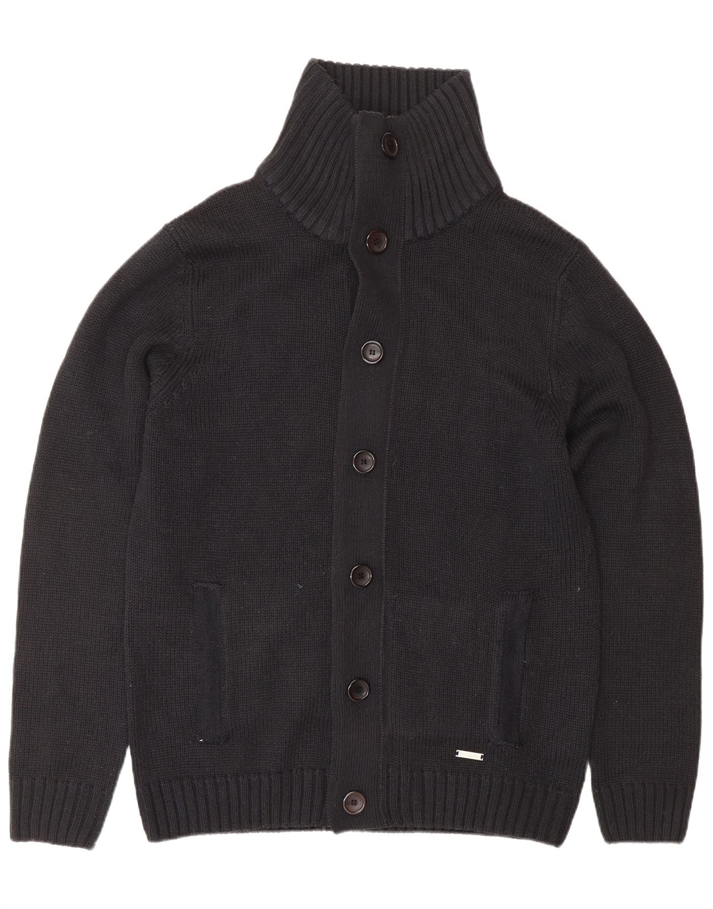 PIERRE CARDIN Maglione cardigan da uomo grande acrilico blu navy