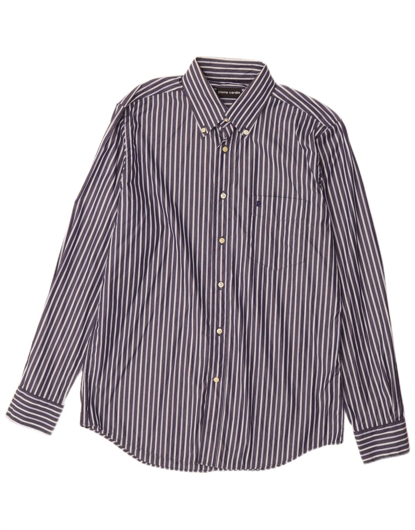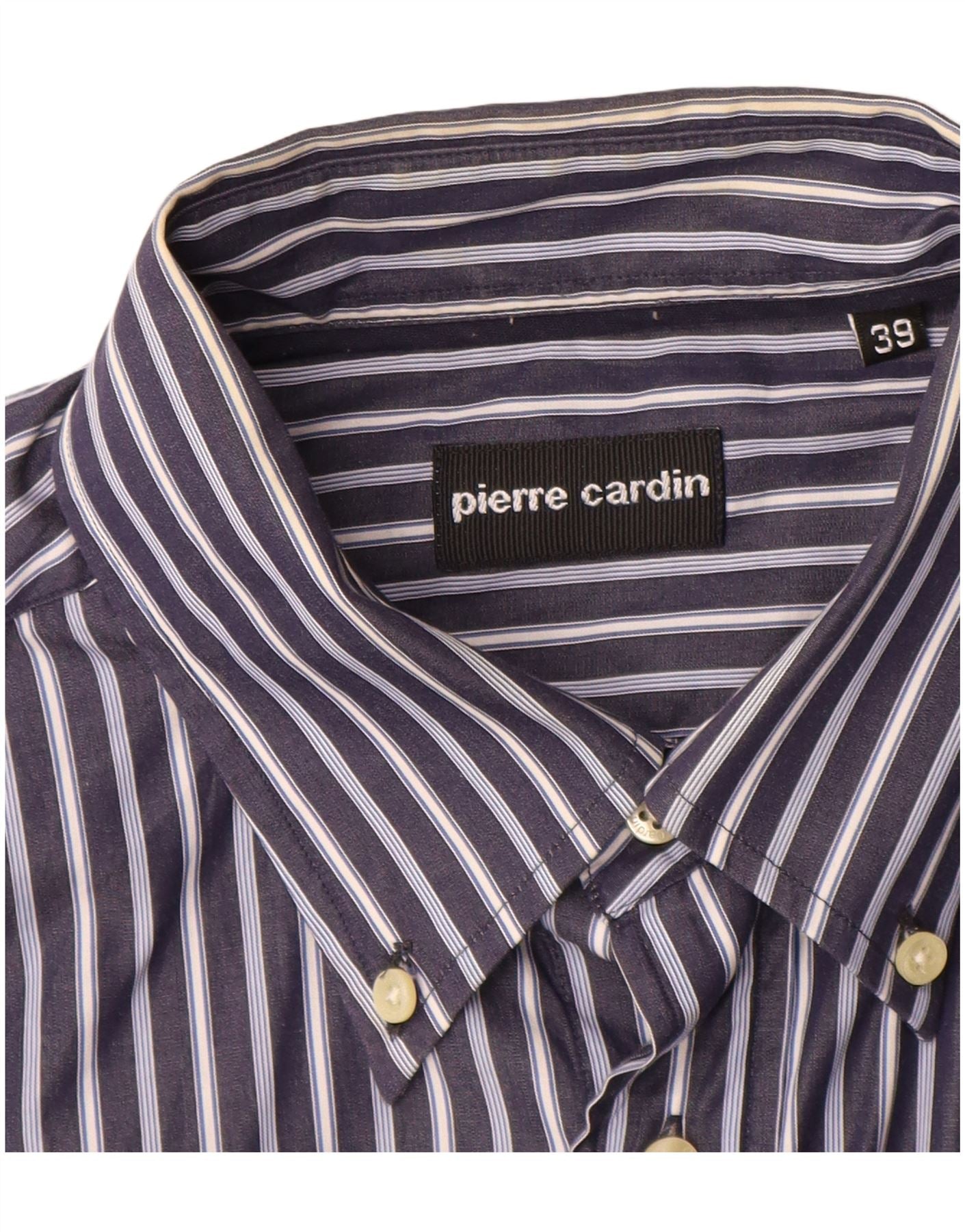 PIERRE CARDIN Camicia da uomo Taglia 39 Cotone gessato blu medio