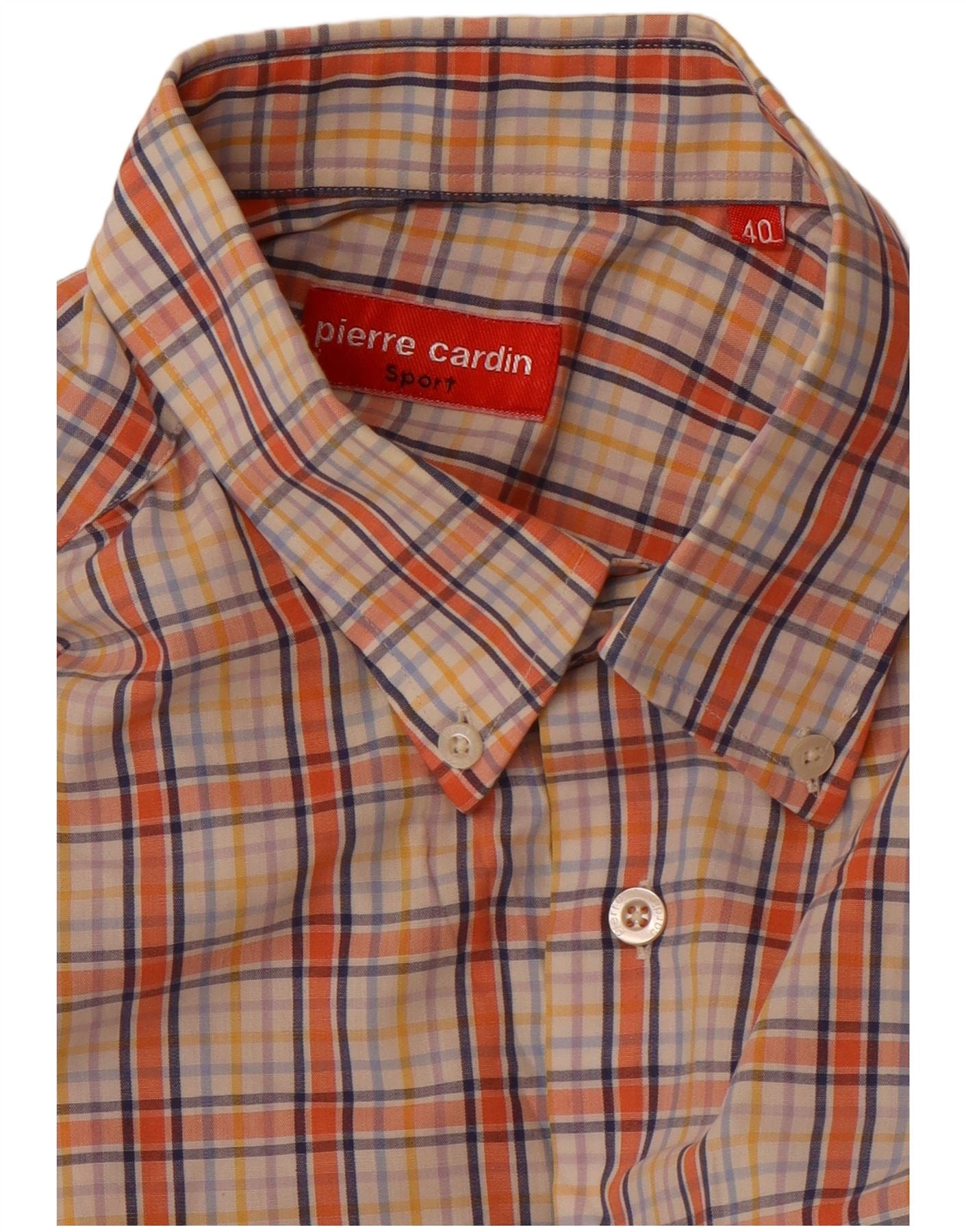 Camicia a maniche corte da uomo Pierre Cardin taglia 40 cotone a quadri arancione medio