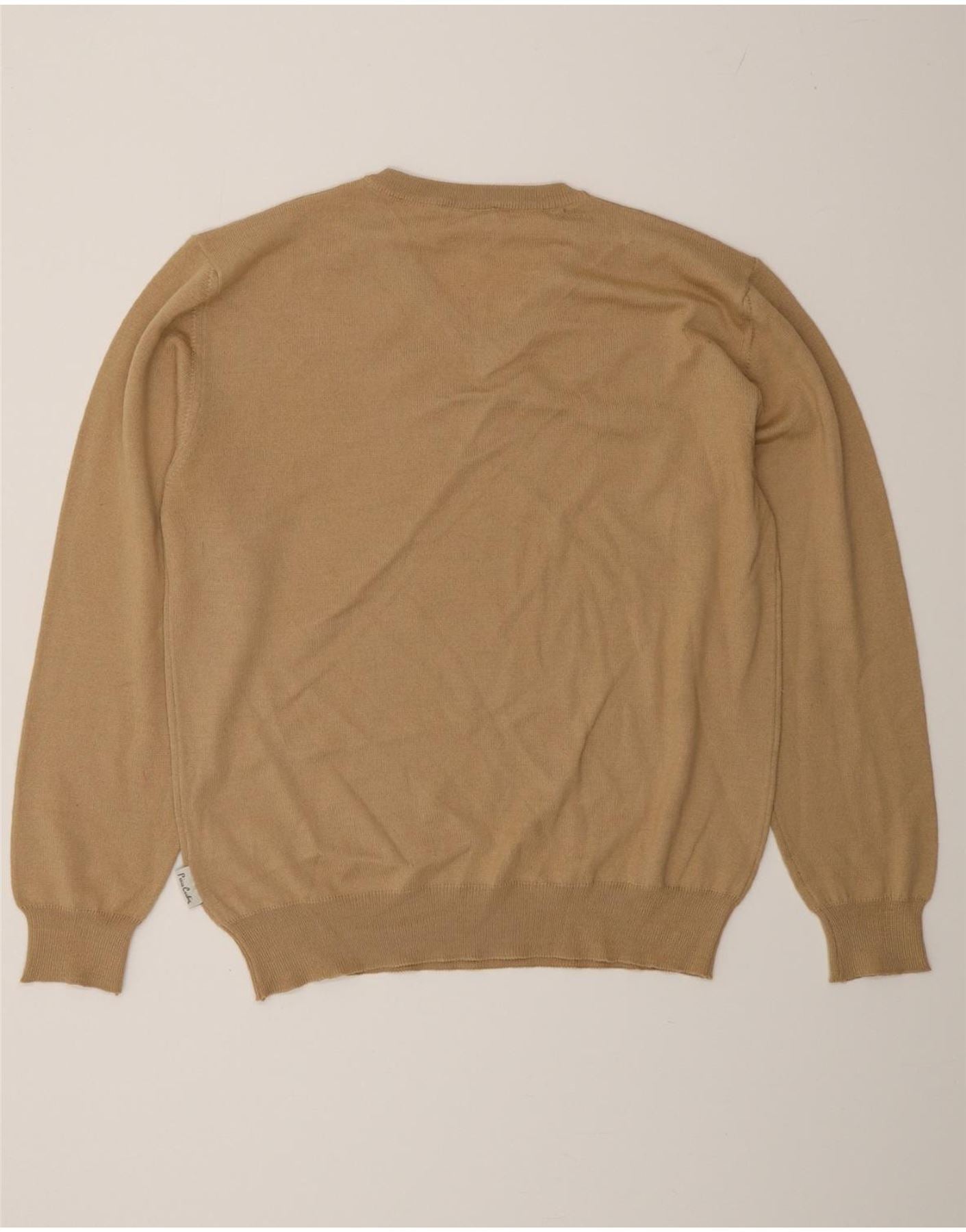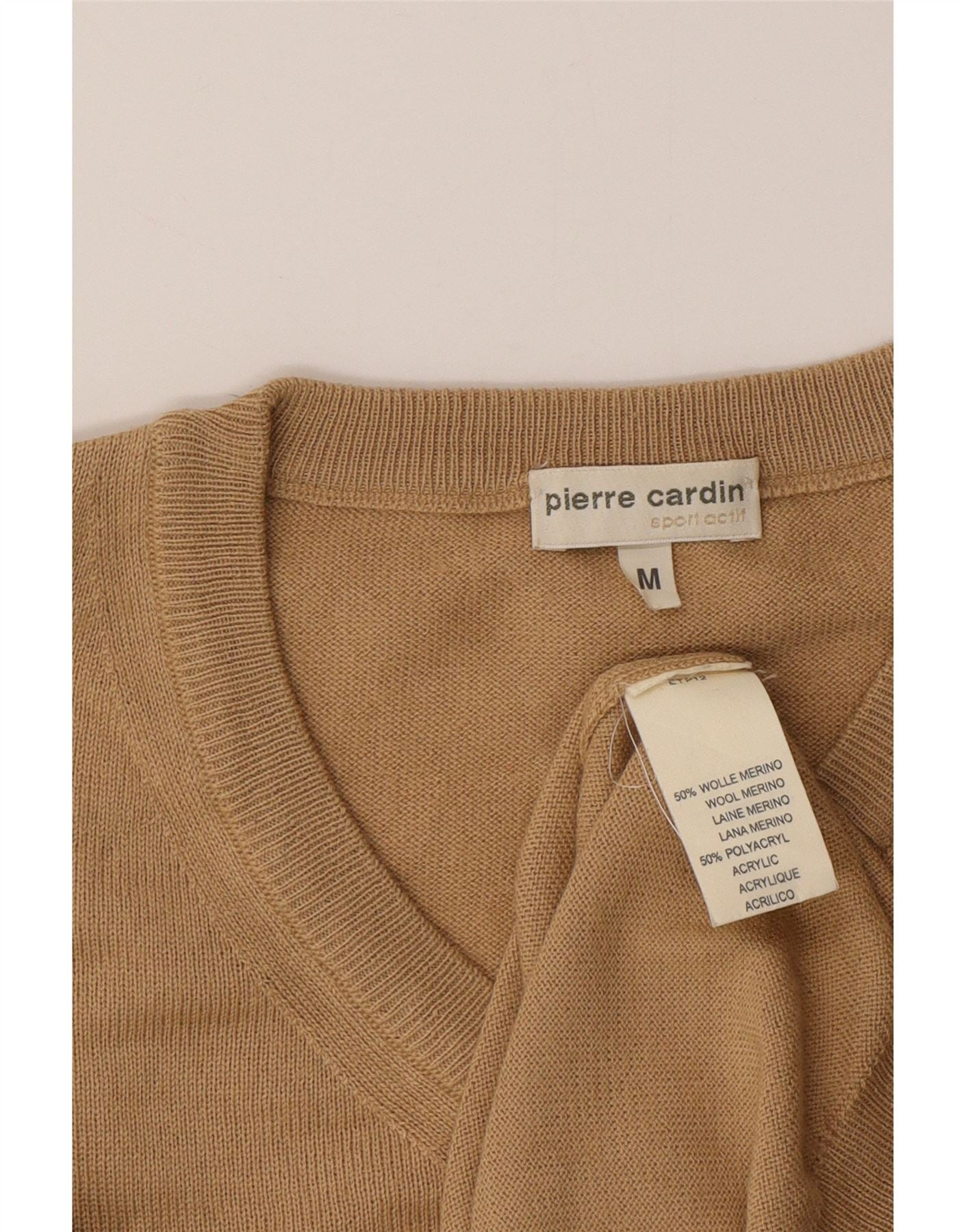 PIERRE CARDIN Mens V-Neck Jumper Sweater Medium Beige Polyacrylic