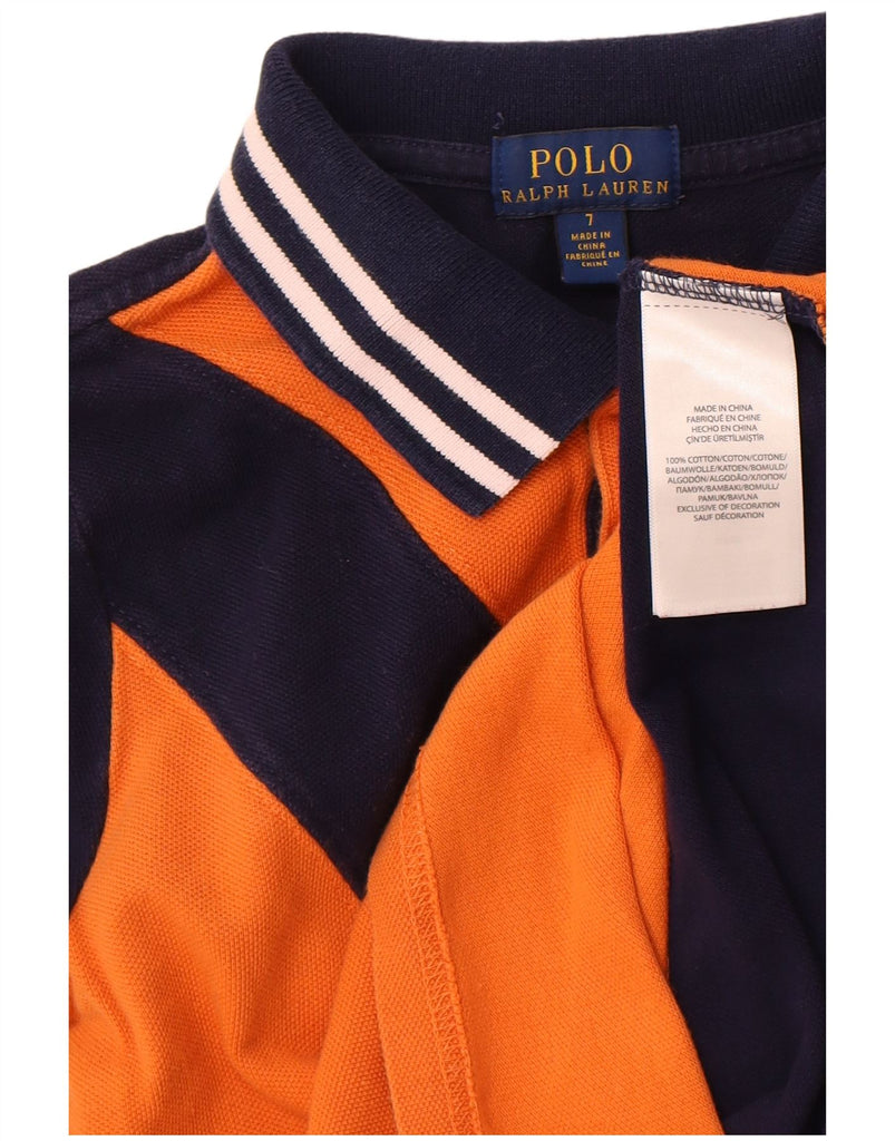POLO RALPH LAUREN Boys Graphic Polo Shirt 6-7 Years Orange Colourblock