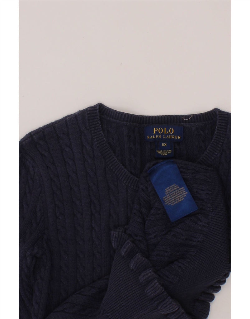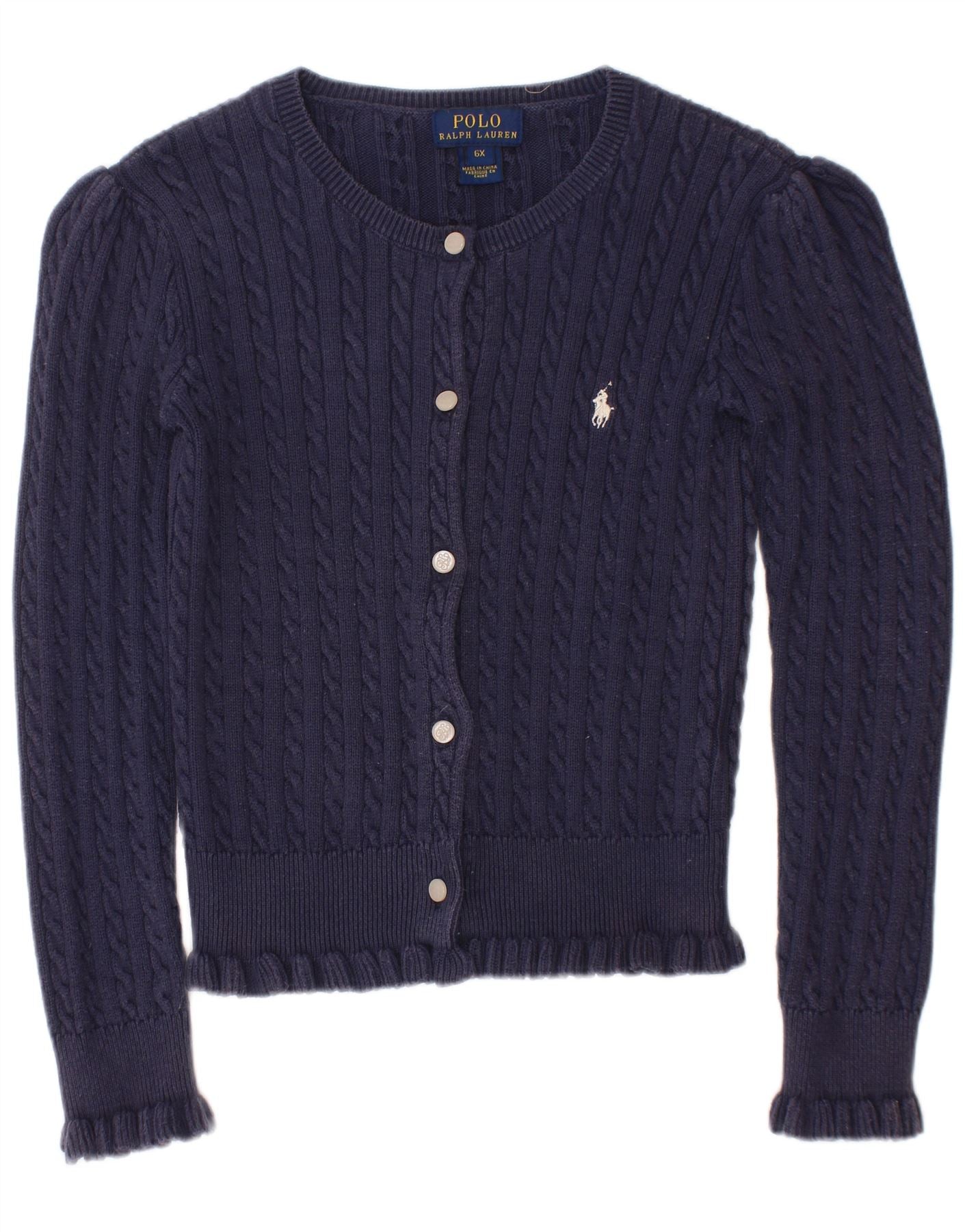 POLO RALPH LAUREN Maglione Cardigan Bambina 6-7 Anni Cotone Blu Navy