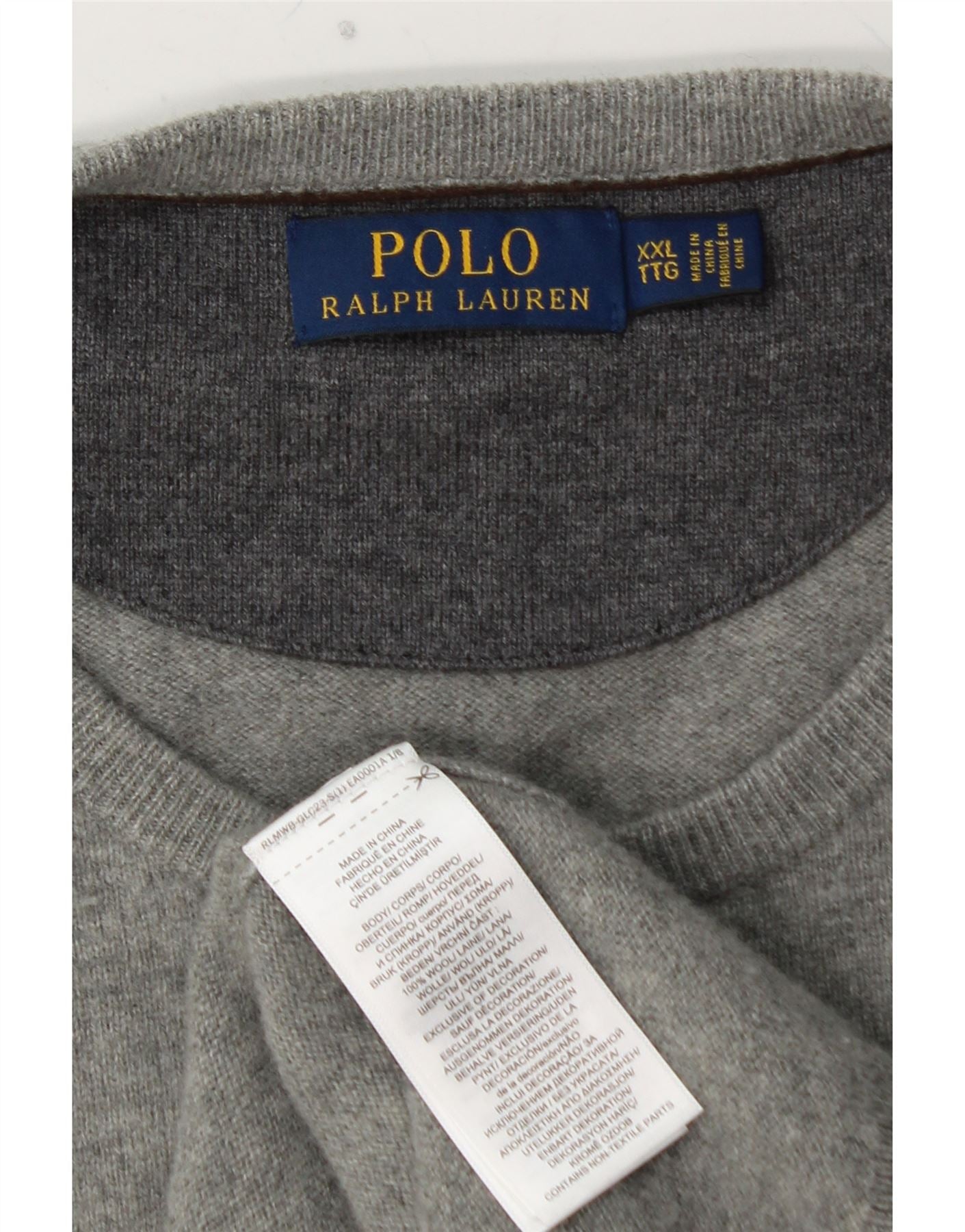 POLO RALPH LAUREN Maglione maglione girocollo da uomo 2XL Lana grigia
