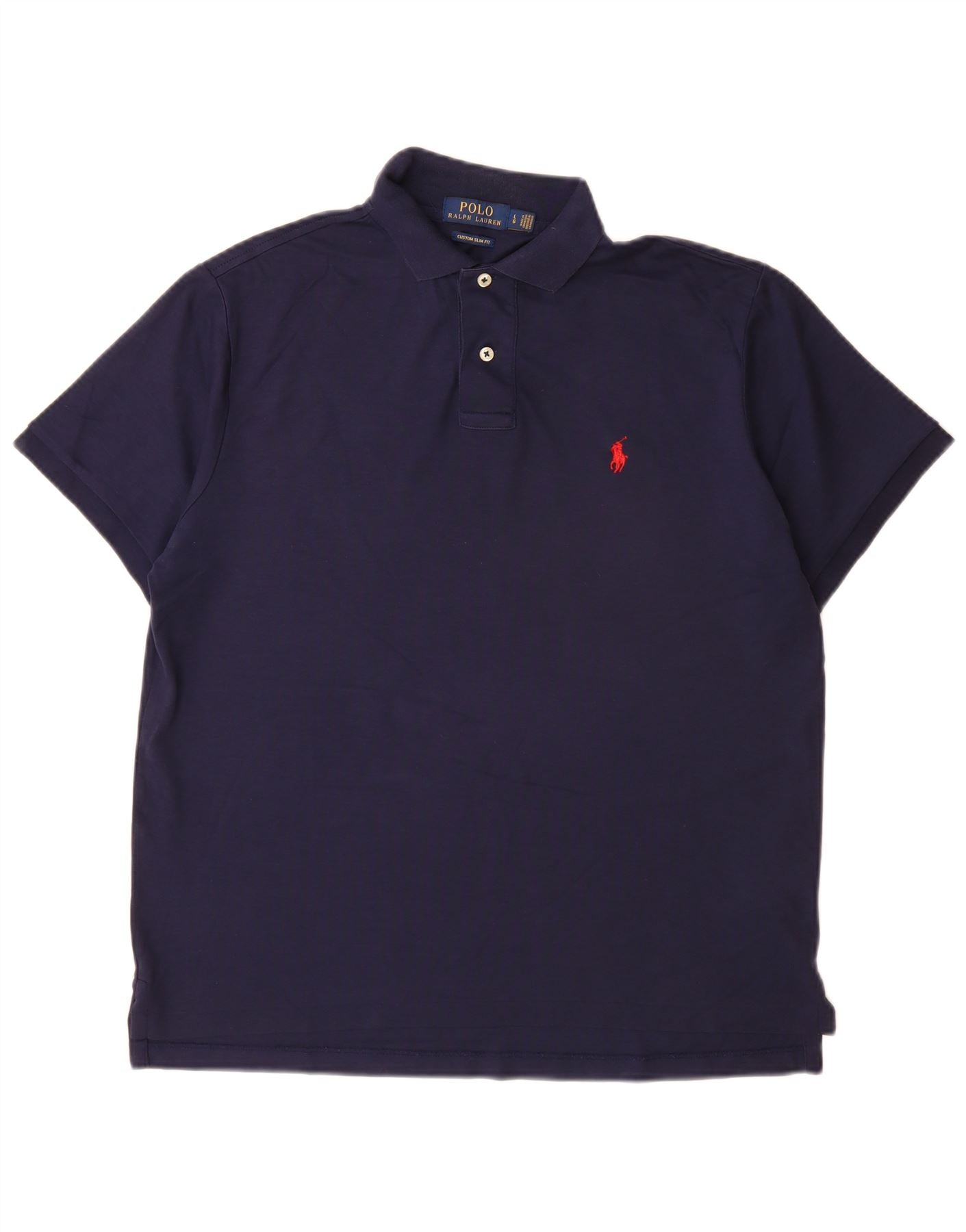 POLO RALPH LAUREN Mens Custom Slim Fit Polo Shirt Large Navy Blue Cotton