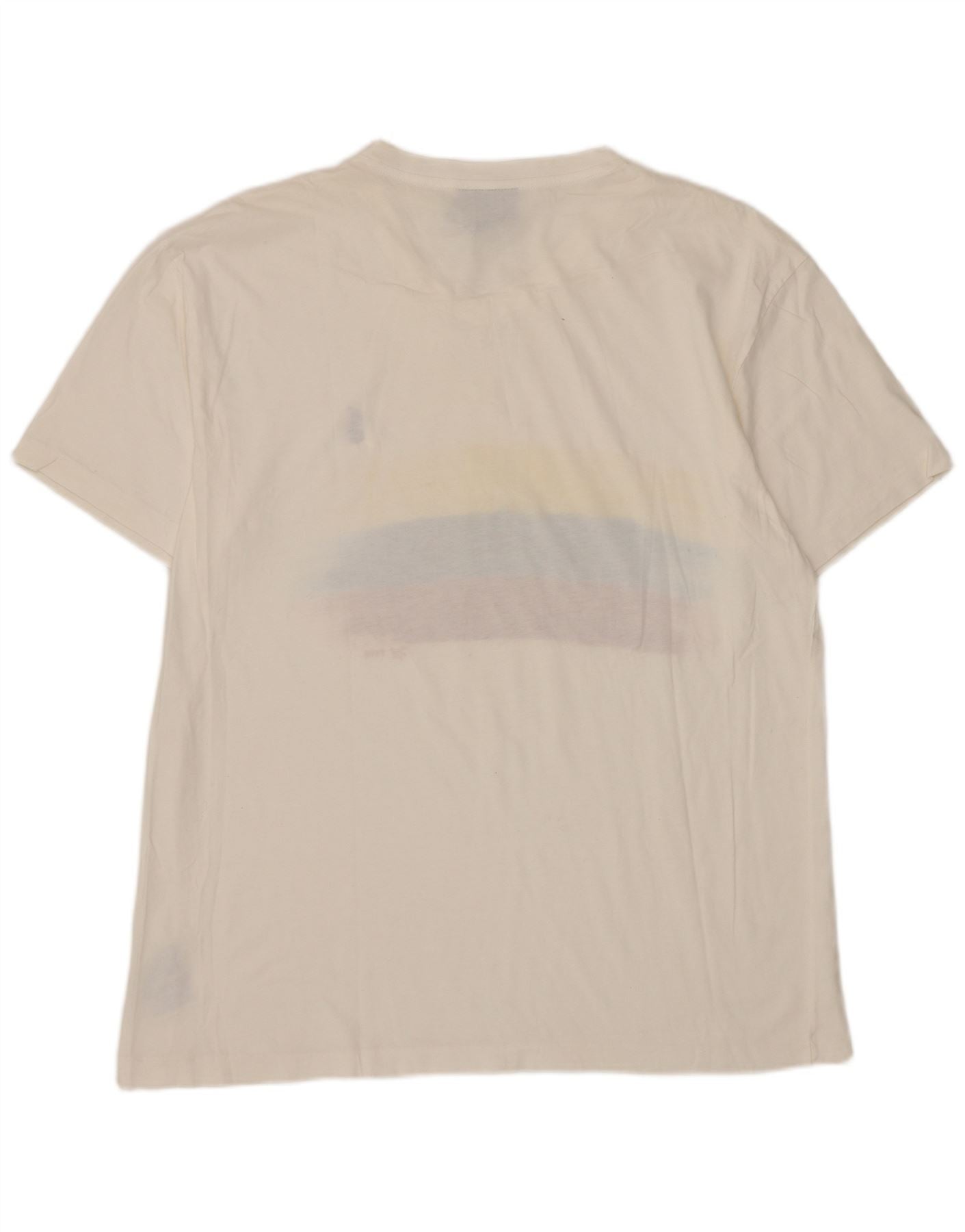 - Descrizione dell'IA: Questa maglietta grafica da uomo Polo Ralph Lauren è realizzata in morbido jersey di cotone bianco sporco al 100%. Presenta un classico scollo a V e maniche corte. La vestibilità regolare garantisce una vestibilità comoda. Un'audace illustrazione dipinta a mano in giallo, blu e rosso aggiunge un elemento grafico distintivo. L'iconico logo ricamato fornisce un sottile tocco di marca.