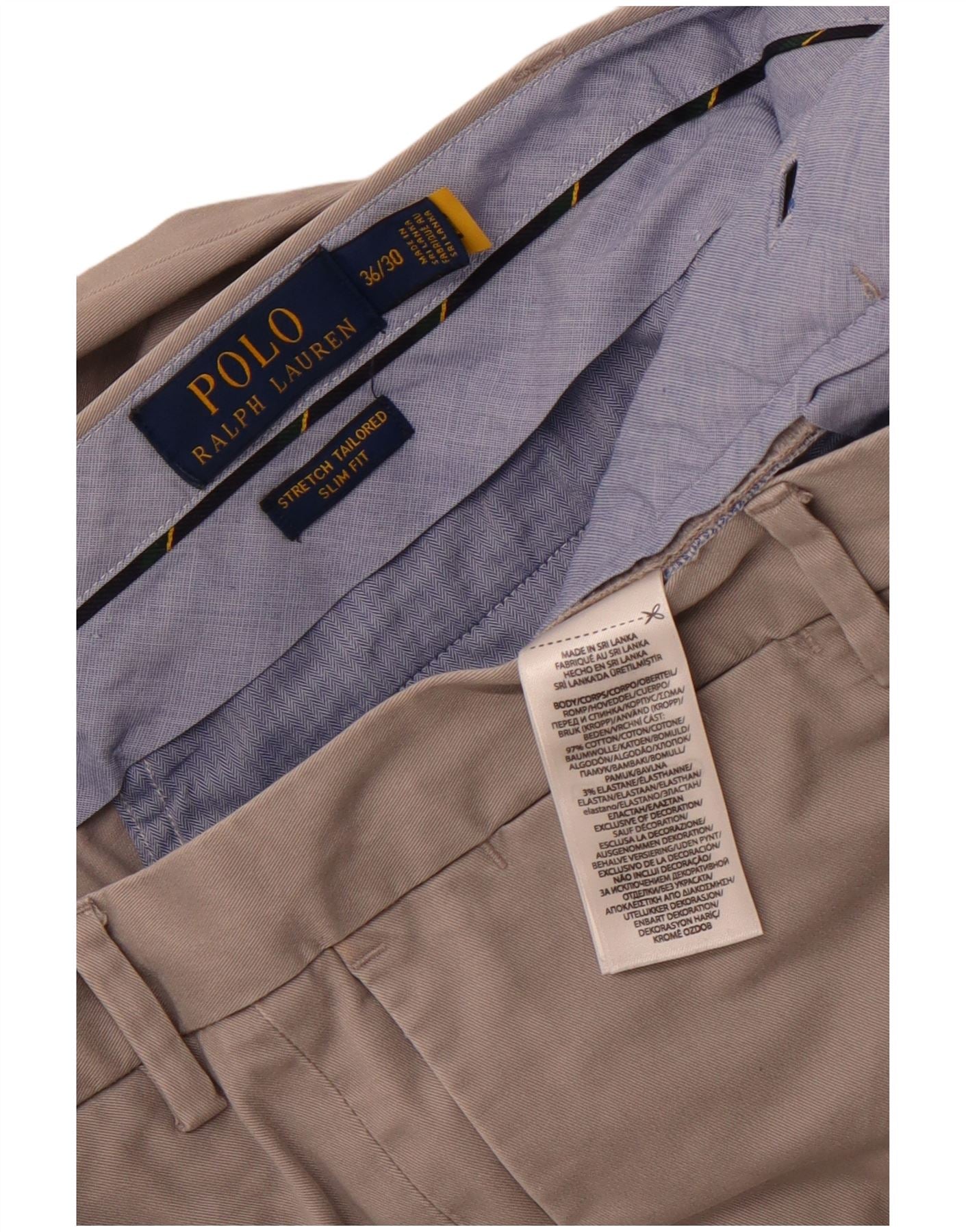 POLO RALPH LAUREN Pantaloni da abito slim fit da uomo W36 L30 Cotone grigio