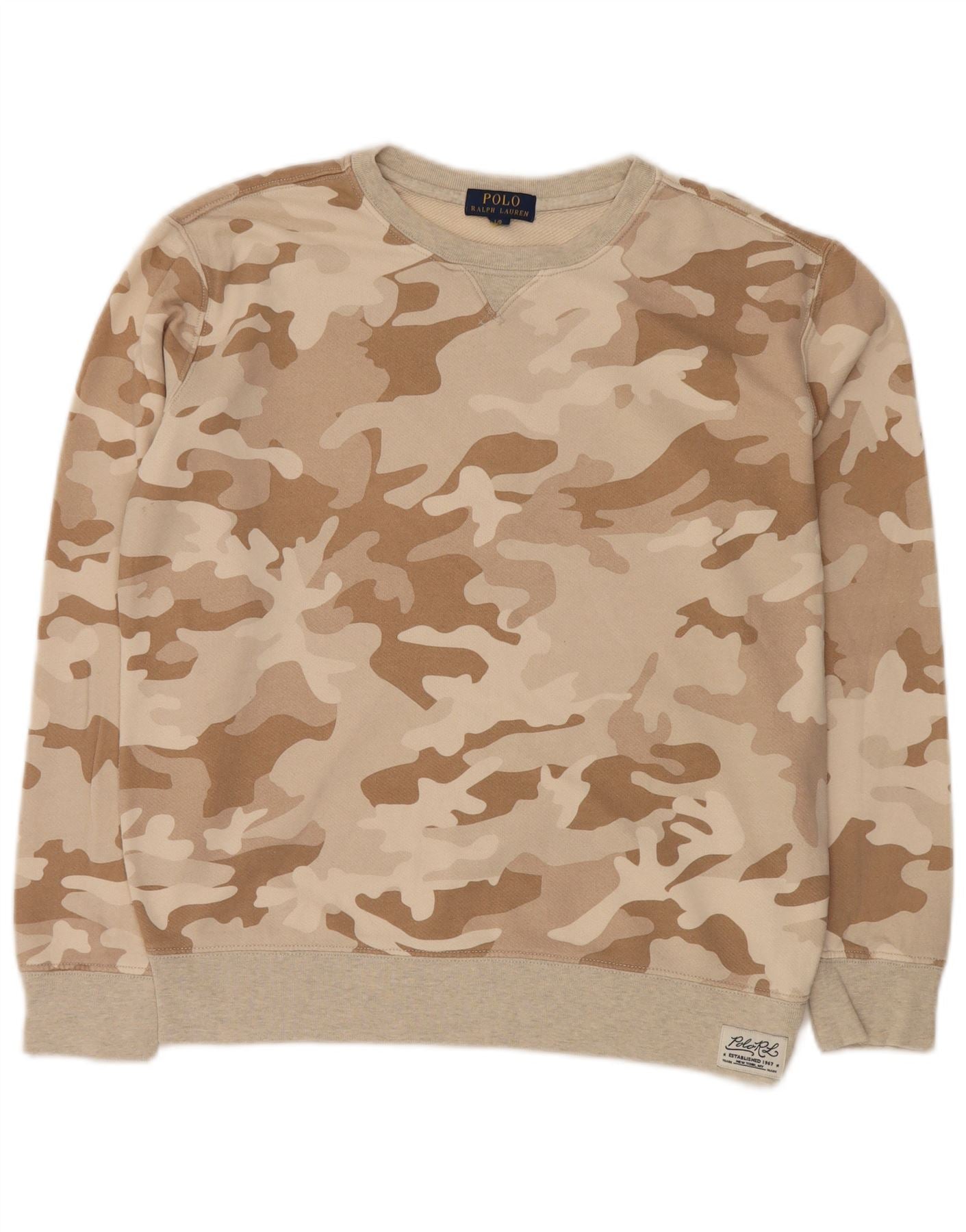 Polo Ralph Lauren Felpa da donna Maglione UK 16 Large Beige Camouflage