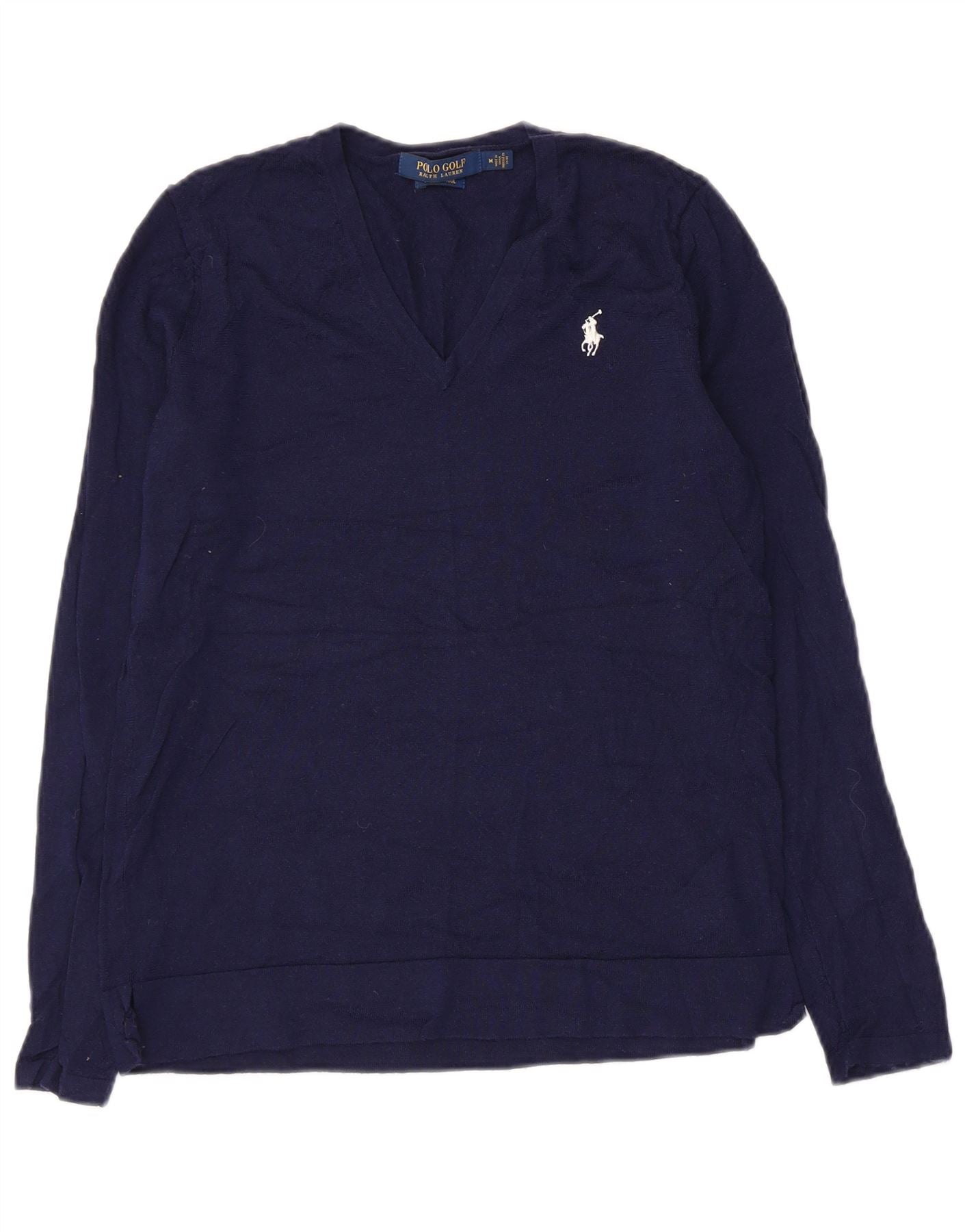 Polo Ralph Lauren Maglione da donna con scollo a V UK 12 Lana medio blu navy