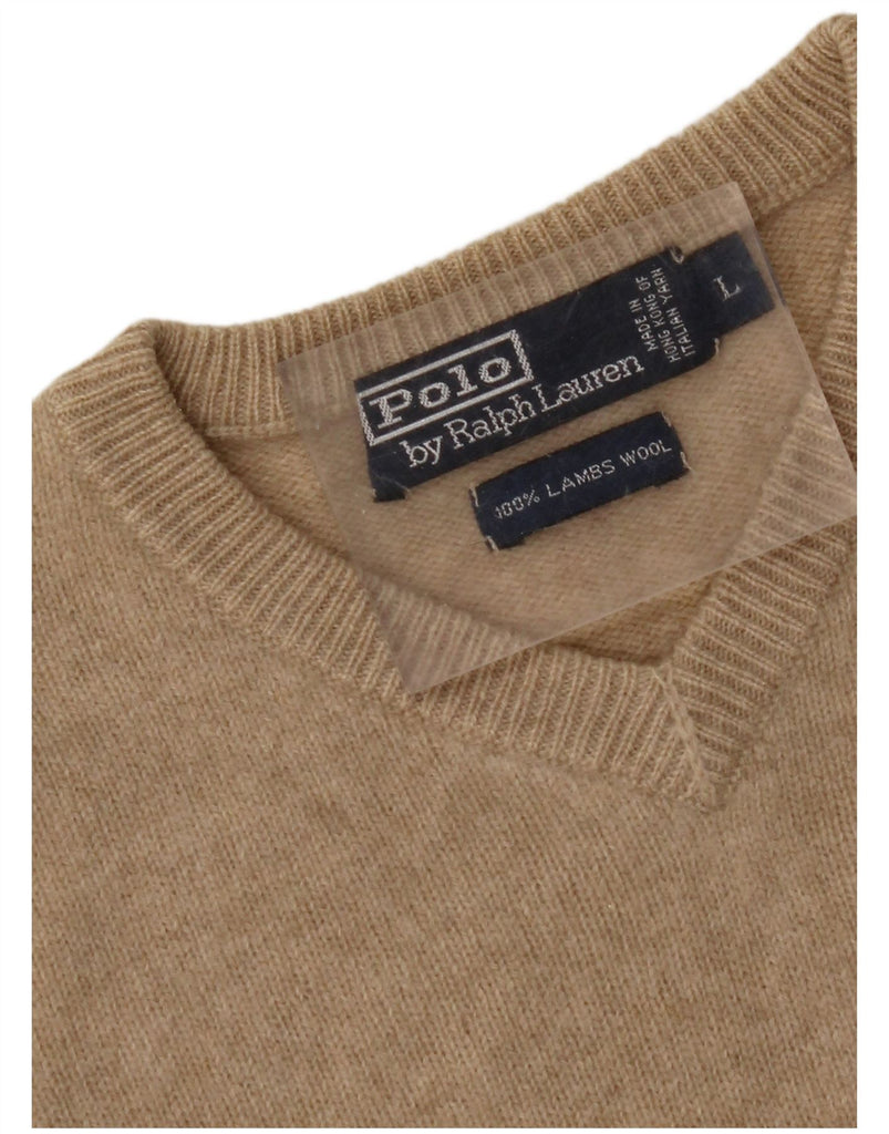 POLO RALPH LAUREN Maglione da donna con scollo a V UK 16 Lana d'agnello beige grande
