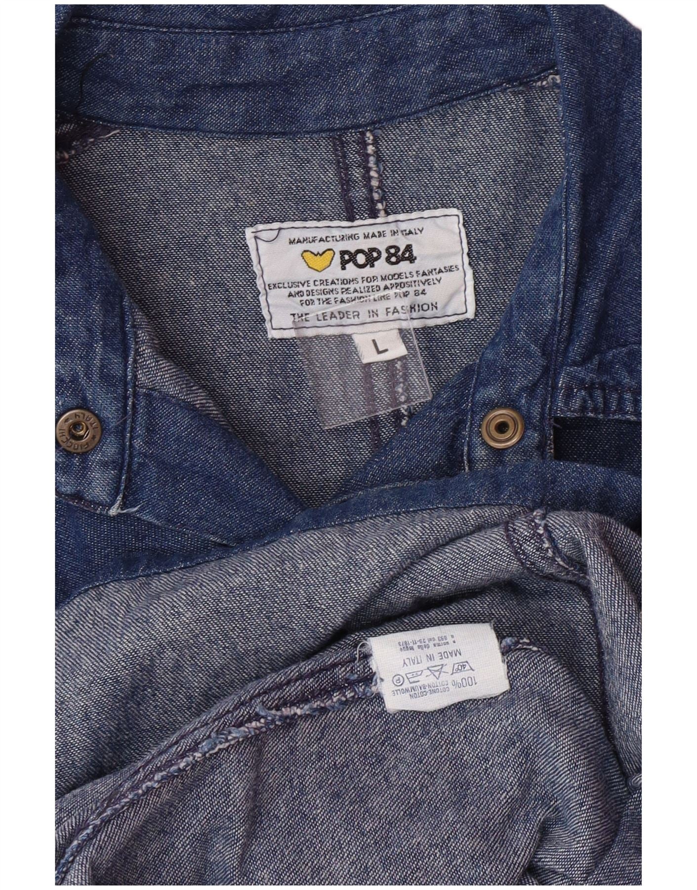POP 84 Abito camicia di jeans militare da donna UK 16 grande cotone blu
