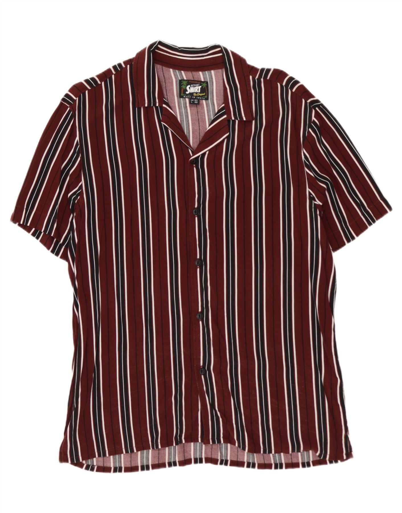 Camicia da uomo a maniche corte PULL & BEAR in viscosa a righe bordeaux grandi