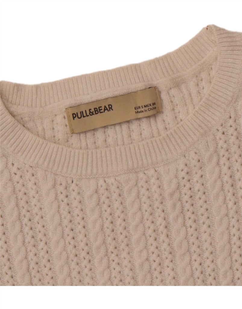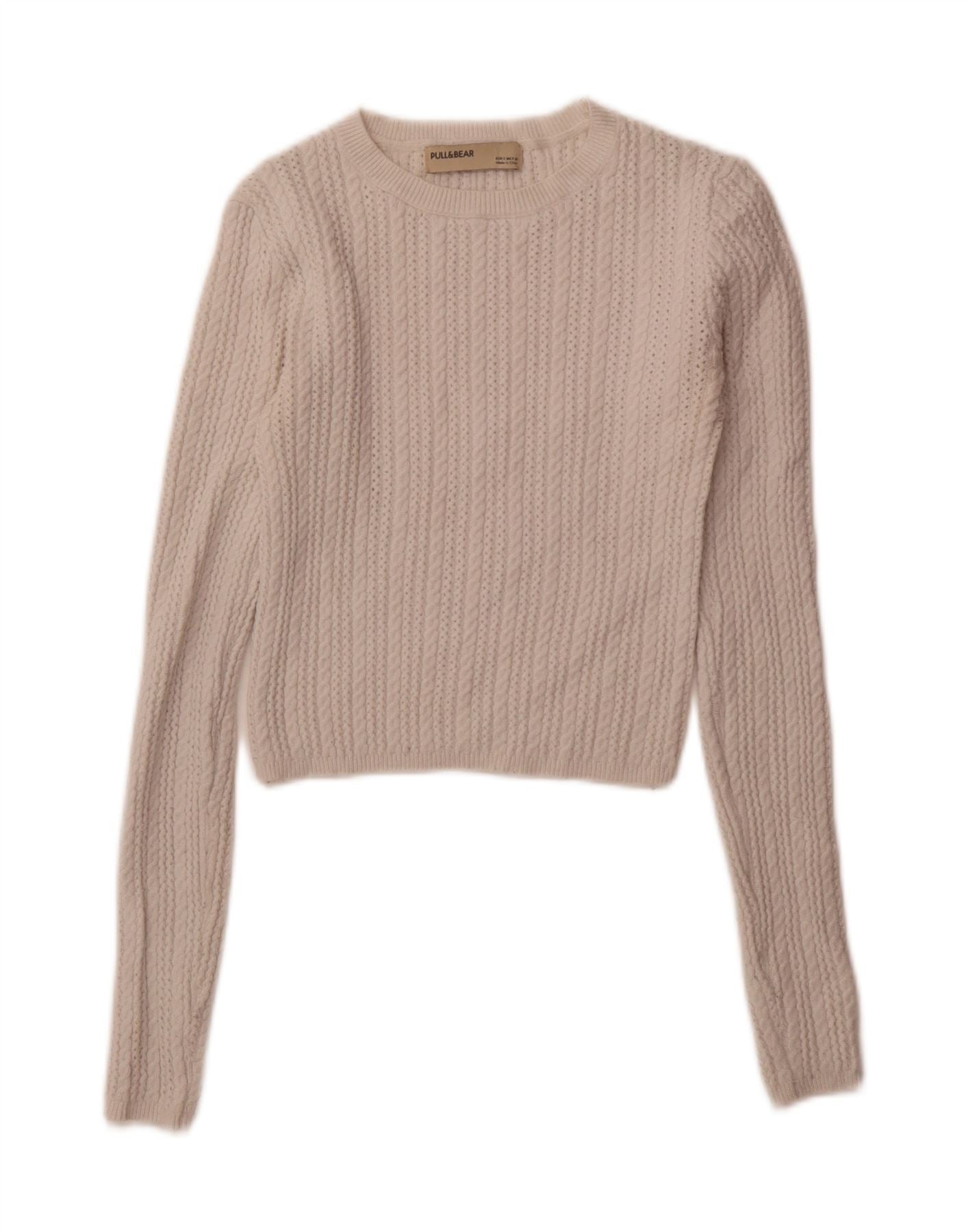 PULL & BEAR Womens Crop Crew Neck Jumper Sweater UK 8 Small White