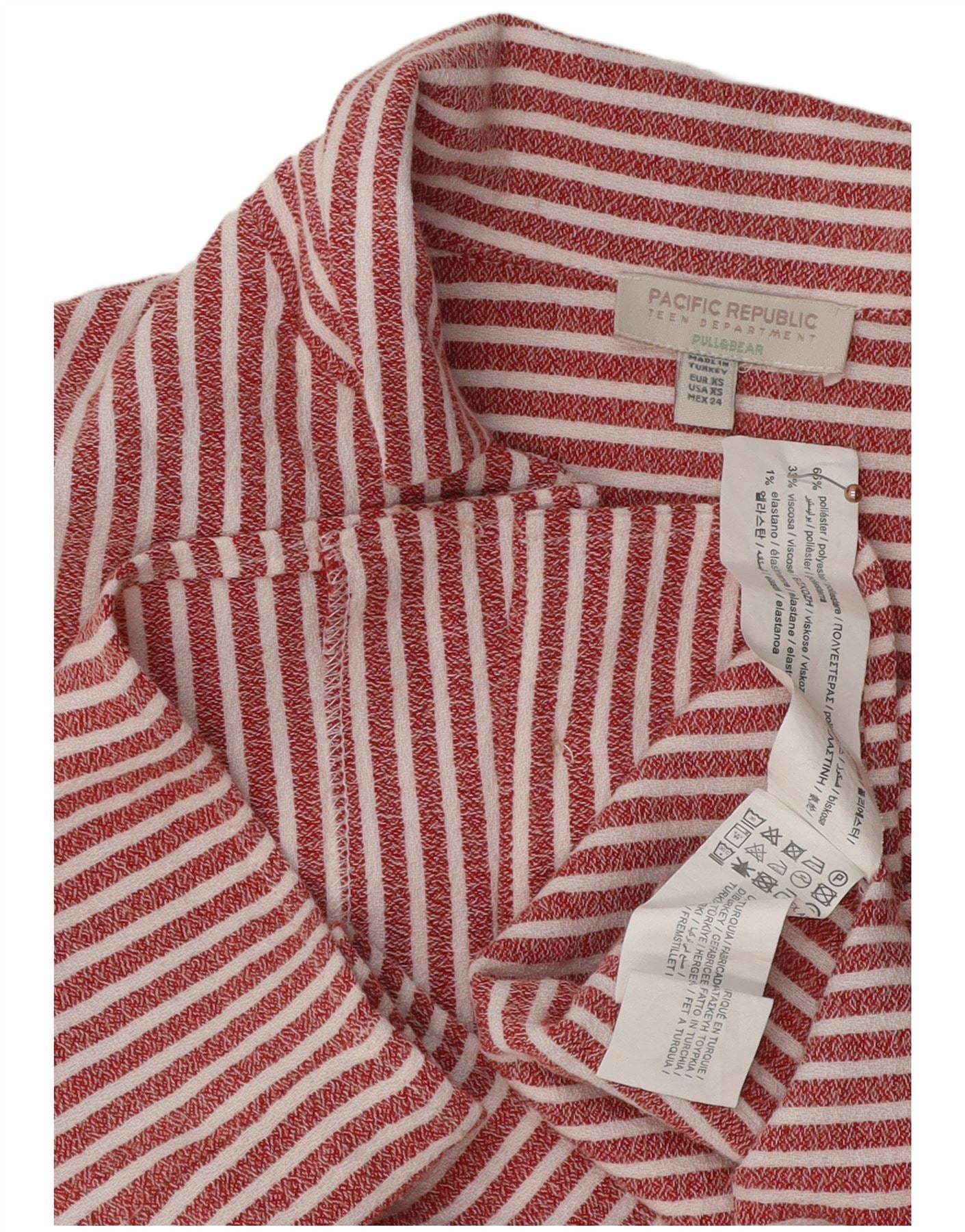 PULL & BEAR Camicia corta a maniche corte da donna UK 6 XS Rossa a righe