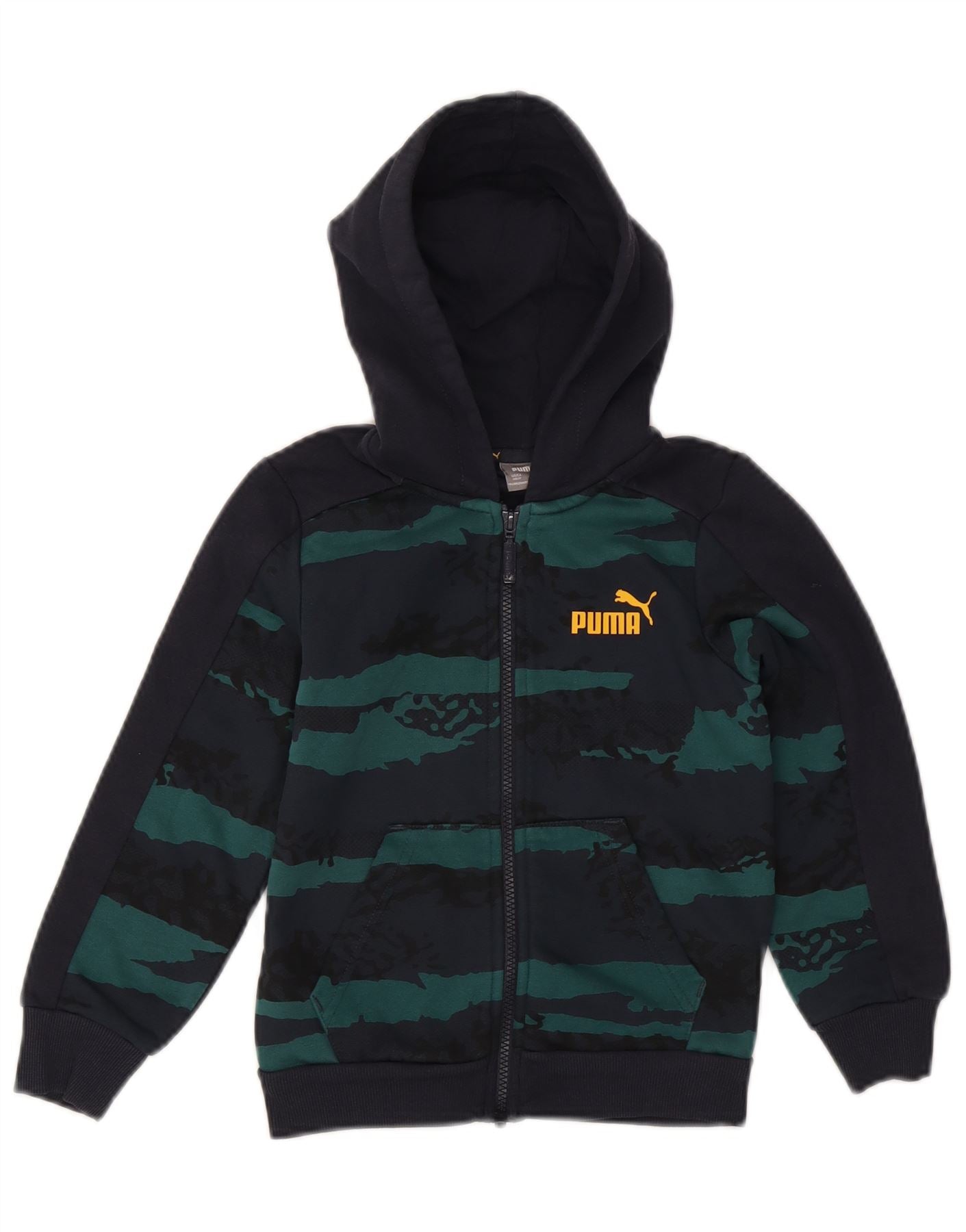 Felpa con cappuccio e zip PUMA per ragazzi 7-8 anni in cotone mimetico blu navy
