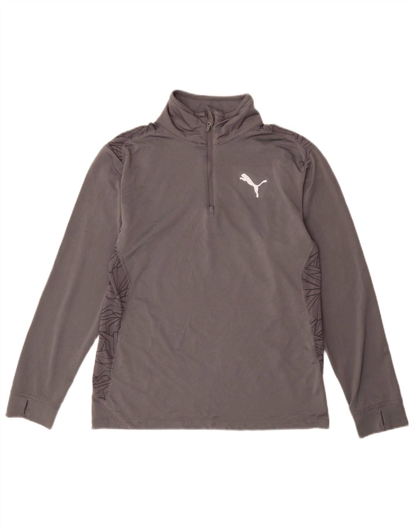 Maglia da ginnastica PUMA da ragazzo con zip e collo, 11-12 anni, grande, grigia