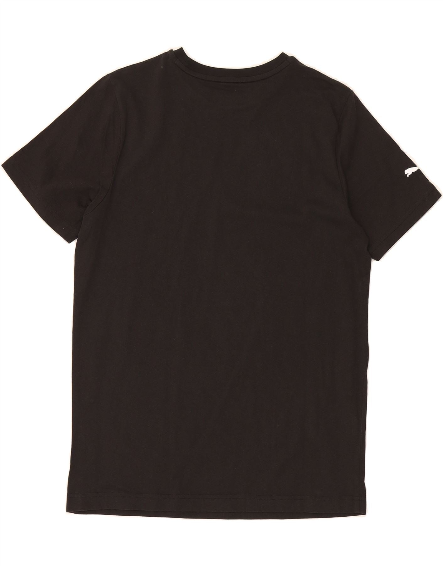 - AI Description: Elevate your sportswear with this pre-owned Puma graphic T-shirt top in excellent condition. Crafted from comfortable jersey fabric, this regular fit, short-sleeved tee features a classic round neck and a pullover closure. The black colourway is accented by the iconic Puma logo. A versatile addition to any wardrobe, perfect for sports or casual wear. Size M.