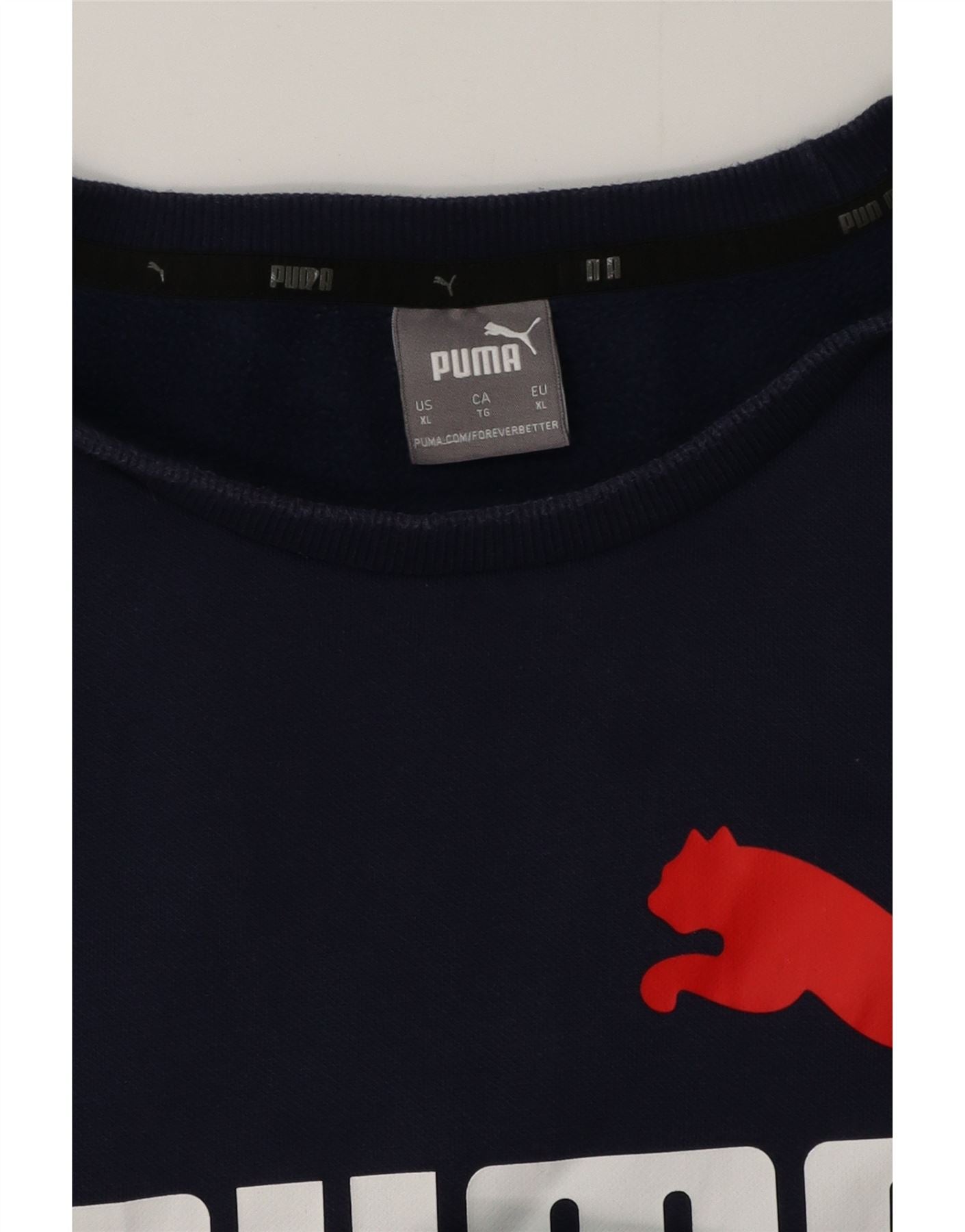 - Descrizione dell'IA: Questa felpa da uomo Puma è realizzata in morbido tessuto jersey blu navy. Presenta un classico girocollo e maniche lunghe. La vestibilità regolare garantisce comfort e facilità di movimento. Le maniche e l'orlo con risvolto forniscono una finitura ordinata. Un logo grafico prominente in rosso e bianco adorna la parte anteriore, aggiungendo un accento audace e sportivo.