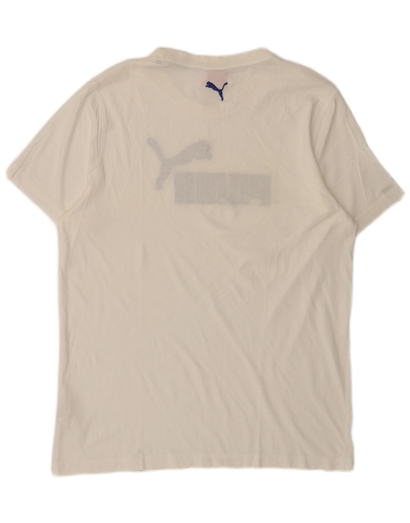 - Descrizione dell'IA: Questa maglietta grafica da uomo Puma è realizzata in morbido tessuto jersey bianco. Presenta un classico girocollo e maniche corte. Un prominente logo Puma blu è visualizzato sulla parte anteriore. La vestibilità regolare garantisce comfort e facilità di movimento. Questo stile pullover offre una sensazione leggera, perfetta da indossare tutti i giorni.