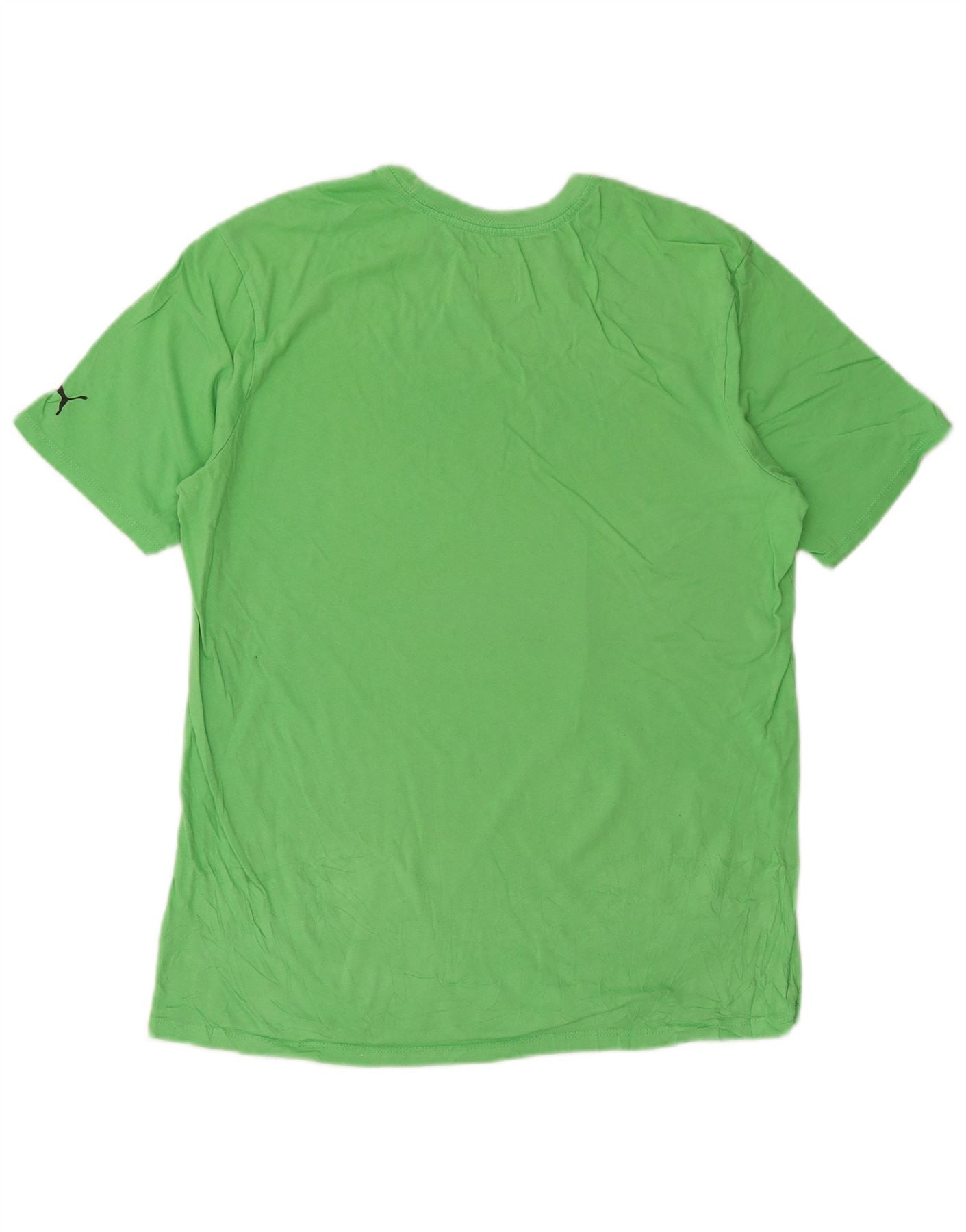 - Descrizione dell'IA: Questa maglietta grafica da uomo Puma è realizzata in morbido tessuto jersey verde. Presenta un classico girocollo e maniche corte. Lo stile pullover offre una vestibilità comoda e regolare. Un prominente logo Puma nero è stampato sul petto, aggiungendo un accento sportivo. Questo top versatile è ideale per l'abbigliamento casual o per le attività sportive.