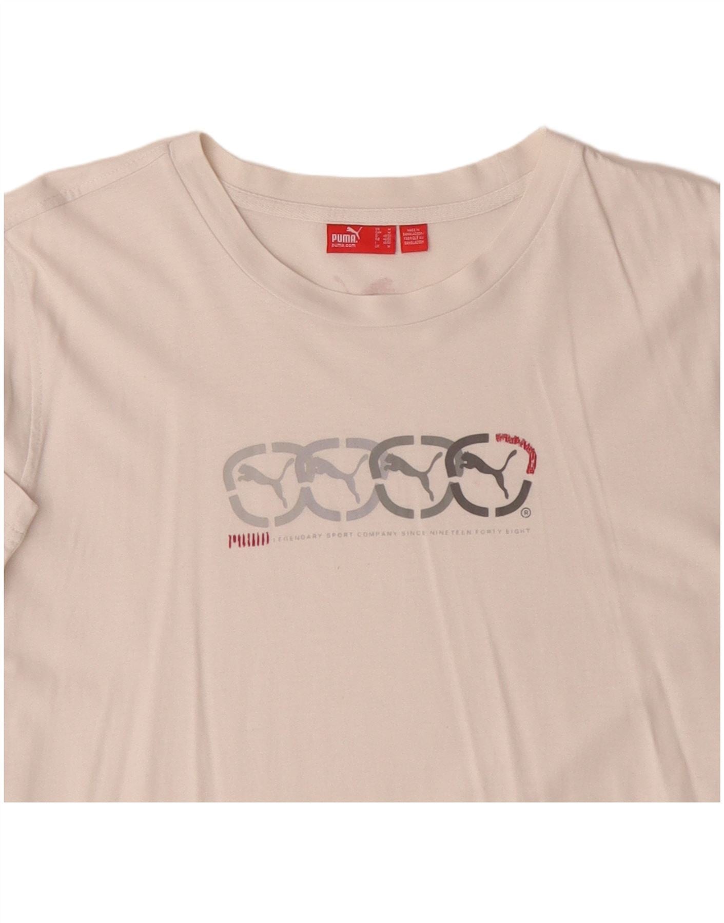 - Descrizione dell'IA: Questa maglietta grafica da donna Puma è realizzata in morbido tessuto jersey bianco sporco. Presenta un classico girocollo e comode maniche corte. La vestibilità regolare offre una silhouette rilassata. Un logo grafico distintivo adorna la parte anteriore, aggiungendo un dettaglio sportivo. Questo modello di maglione è traspirante e comodo da indossare tutti i giorni.