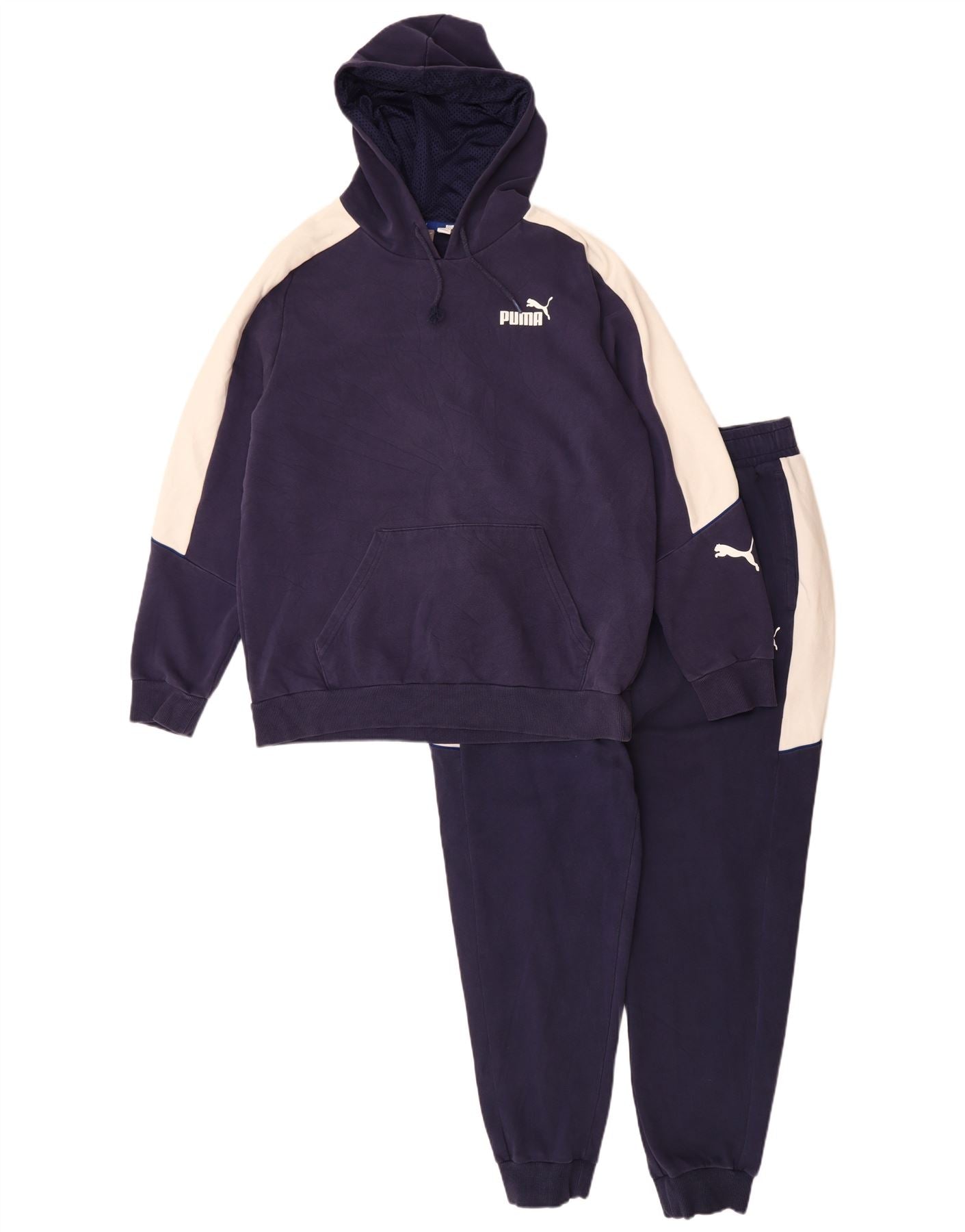 Tuta intera PUMA da uomo con cappuccio, taglia grande, in cotone color block blu navy
