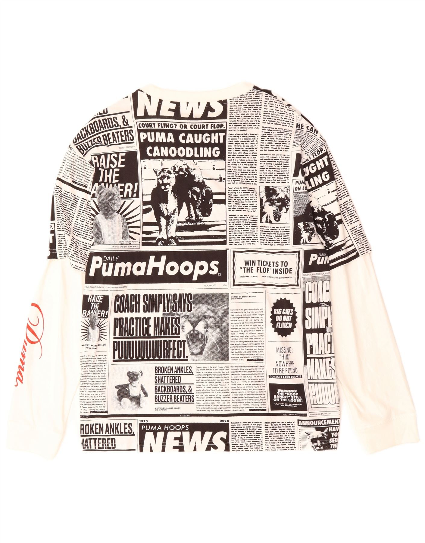 Puma Maglietta grafica da giornale da uomo a maniche lunghe grande in cotone bianco