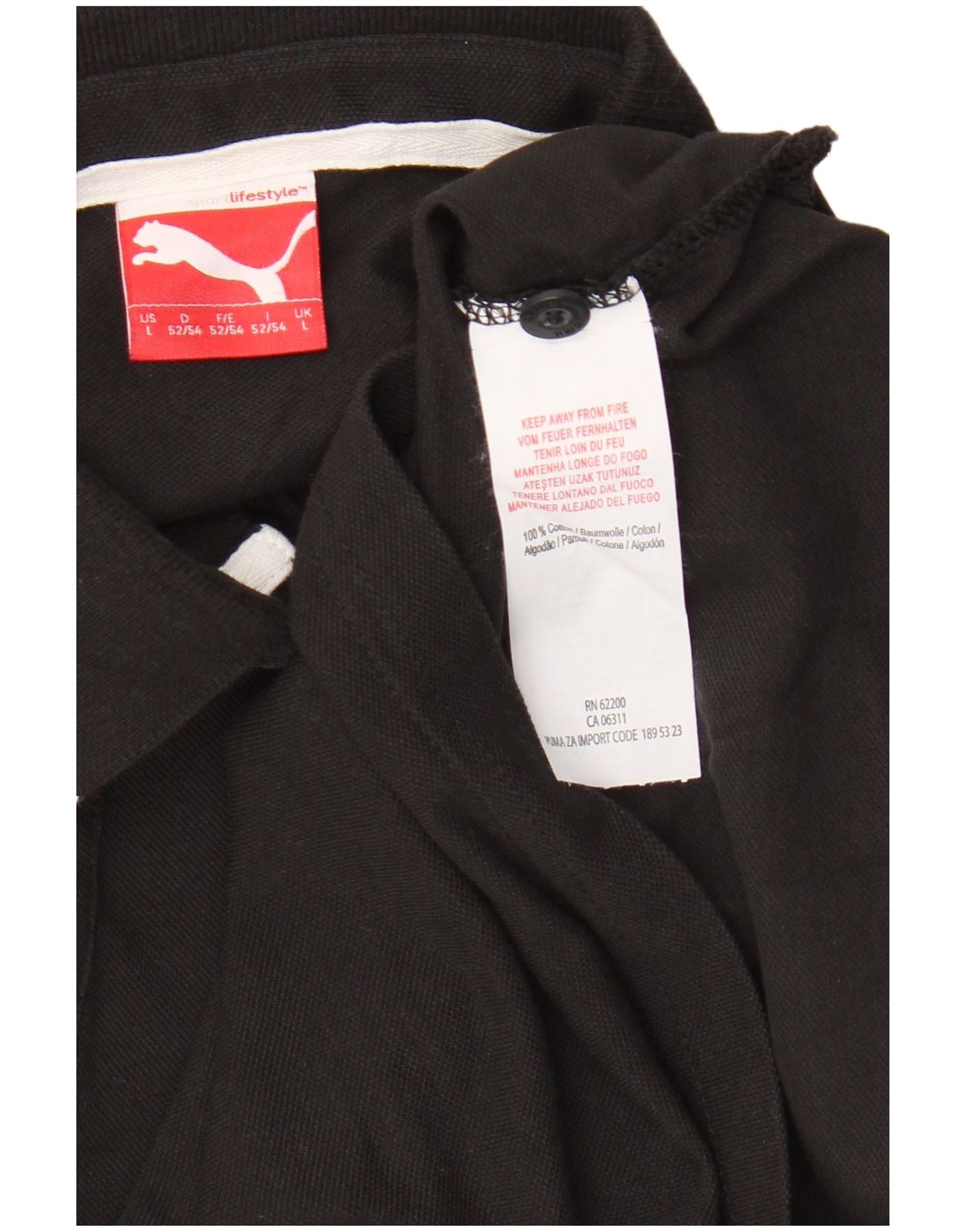 Polo Puma da uomo grande in cotone nero