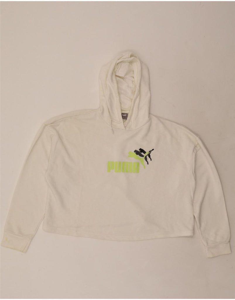 PUMA Felpa con cappuccio oversize con grafica da donna UK 16 Large in cotone bianco sporco