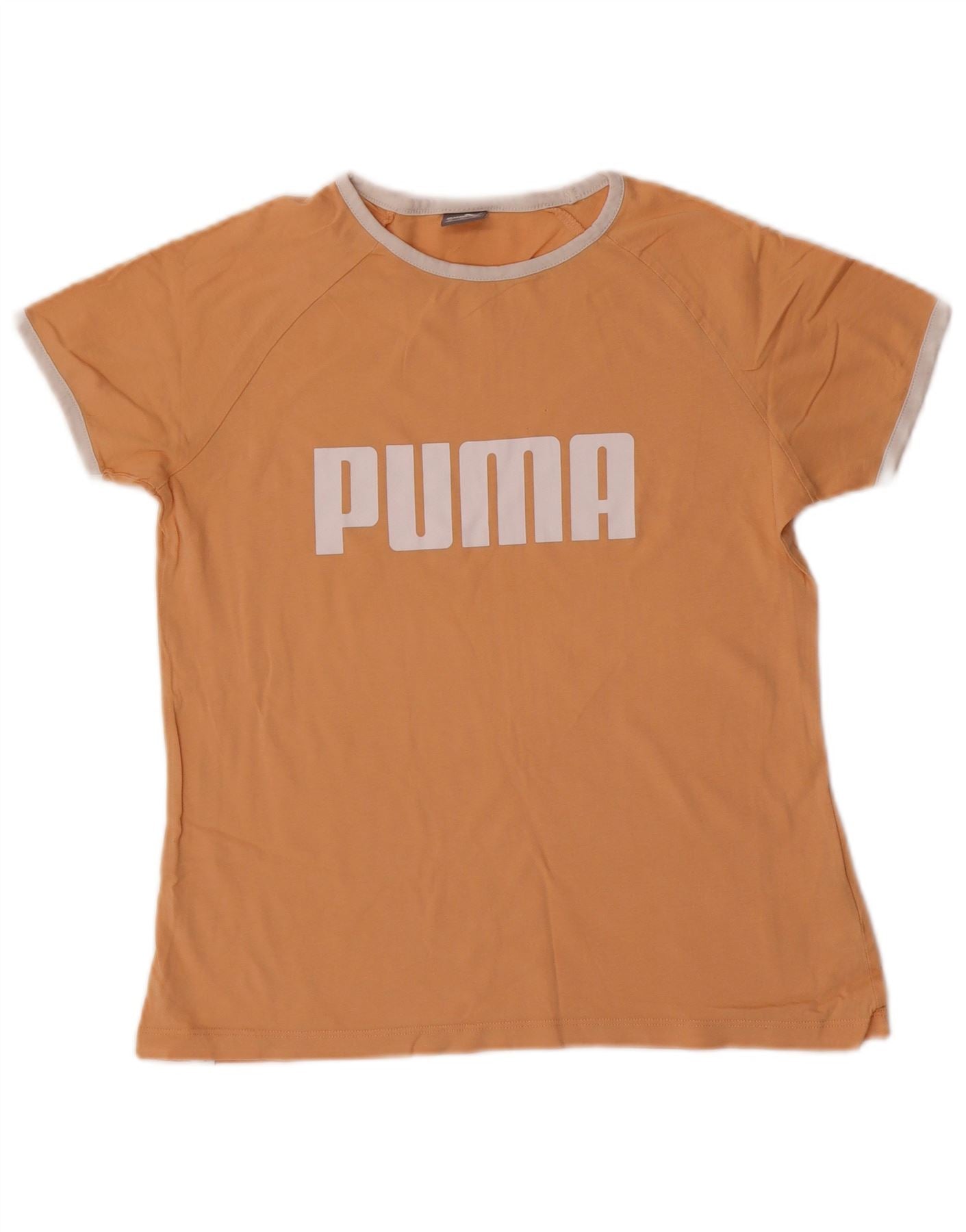 PUMA T-shirt grafica da donna Top UK 14 Cotone color block arancione medio