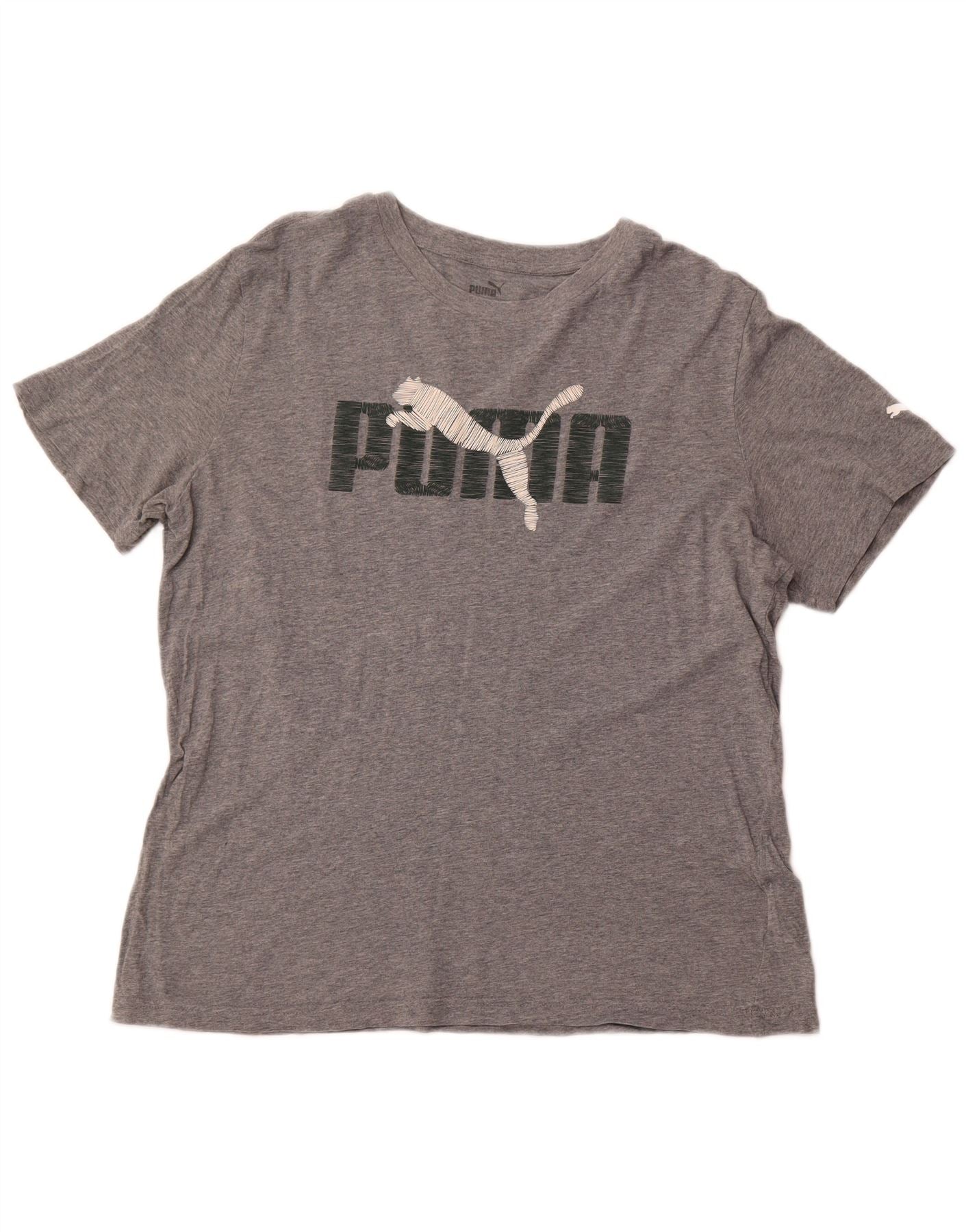 PUMA T-shirt grafica da donna Top UK 16 Large Grigio Cotone
