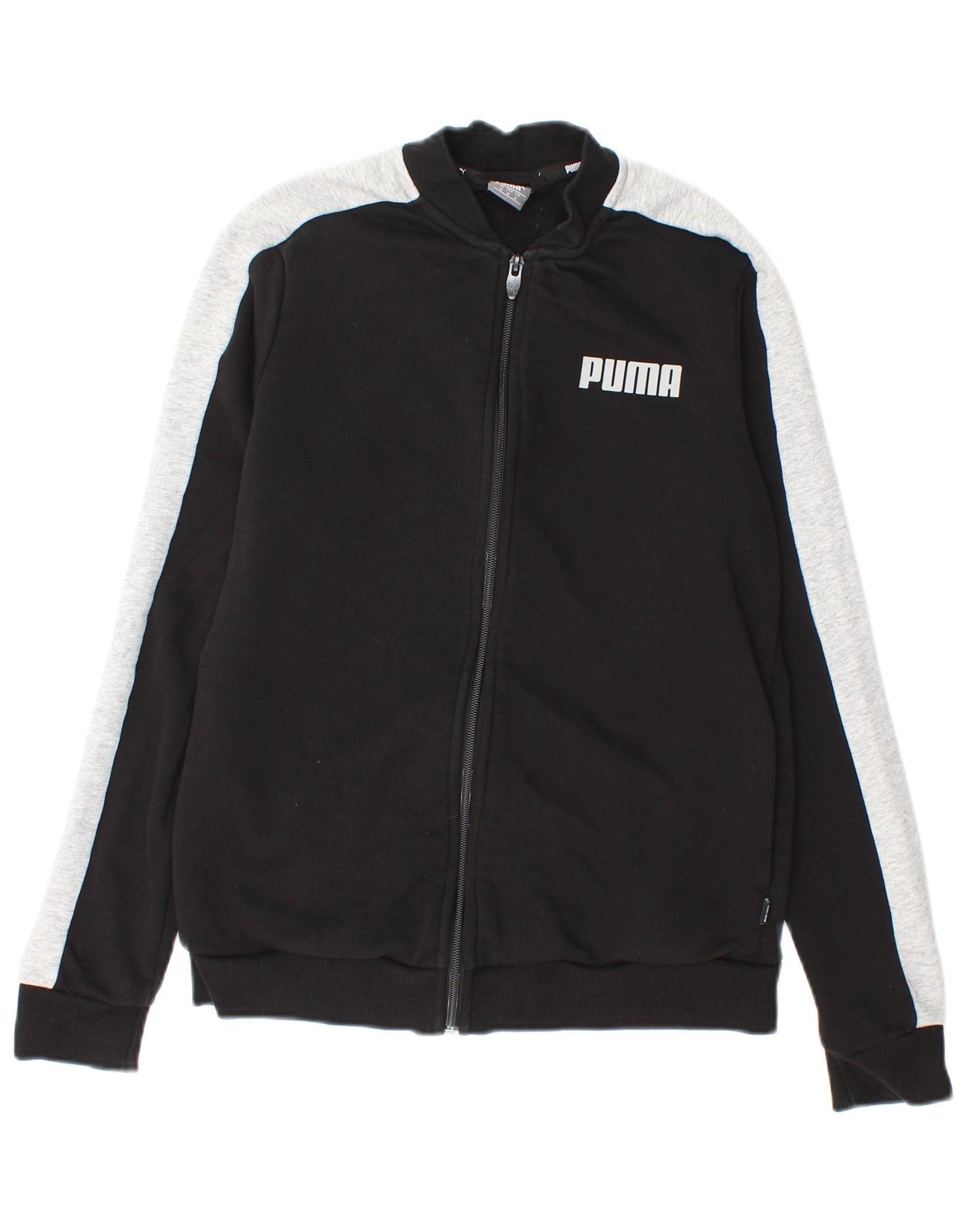 - Descrizione dell'IA: Questa giacca da tuta da donna Puma è realizzata in un comodo tessuto in pile misto cotone. Presenta un classico corpo nero con maniche lunghe grigie a contrasto. Un prominente logo Puma adorna il petto. Il collo alto e la chiusura full zip offrono uno stile versatile. La sua vestibilità regolare garantisce facilità di movimento e comfort. Pratiche tasche sono incluse per comodità.