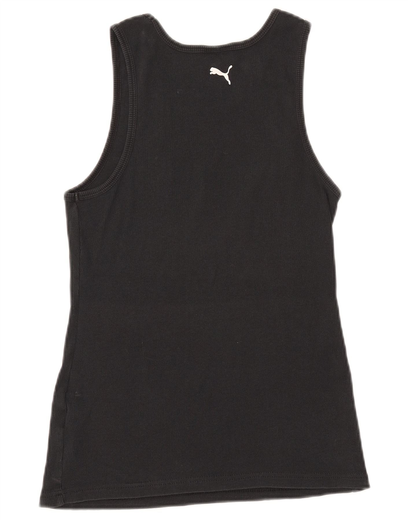- Descrizione dell'IA: Questa maglietta grafica da donna Puma è realizzata in maglia di misto cotone nero e offre una trama morbida a coste. Il suo design senza maniche presenta un classico scollo rotondo per il massimo comfort. Una prominente grafica del logo Puma è visualizzata sulla parte anteriore. La vestibilità regolare assicura una silhouette traspirante e confortevole, perfetta per l'abbigliamento sportivo o casual.
