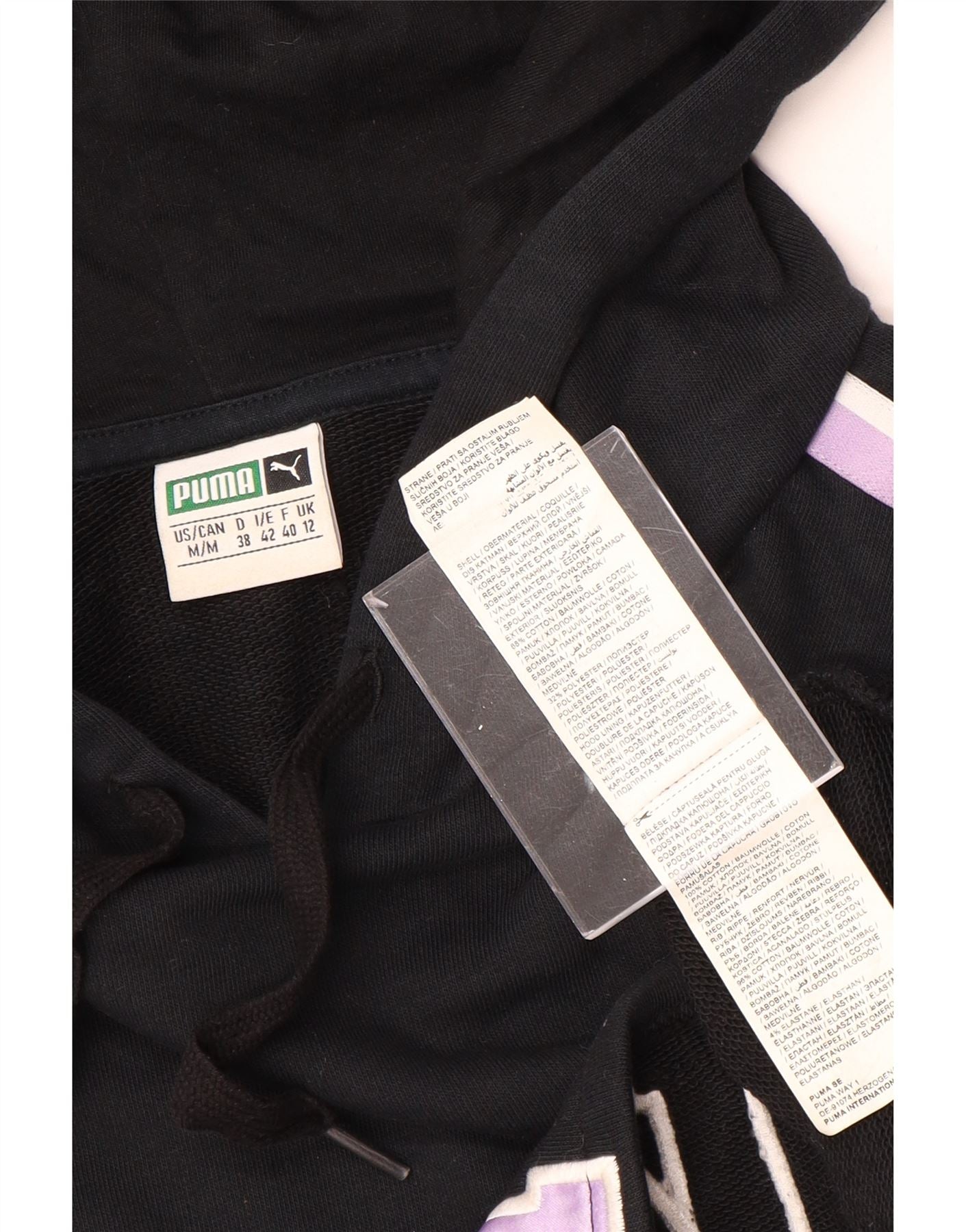 Maglione corto con cappuccio oversize da donna PUMA UK 12 Medium Black Colourblock
