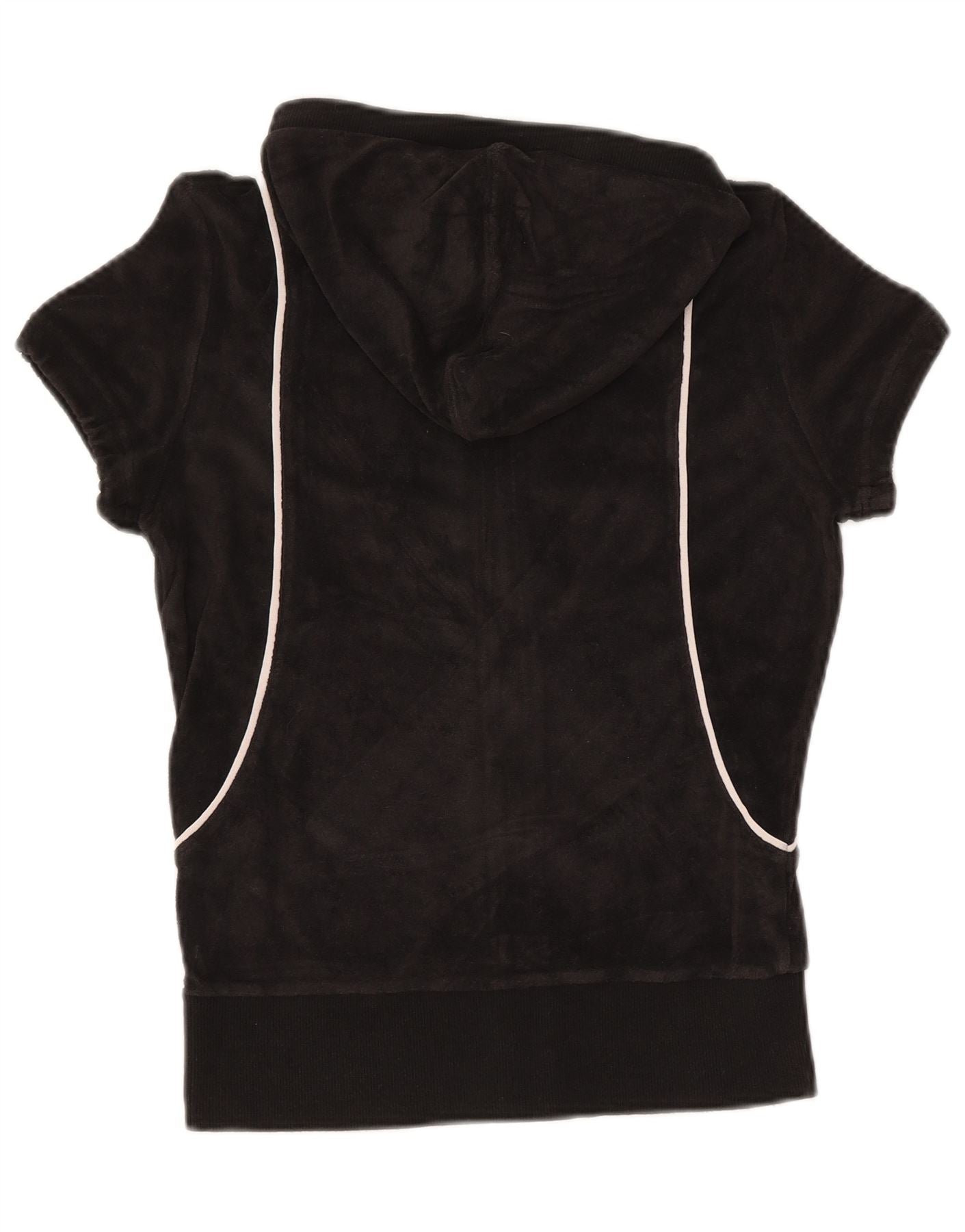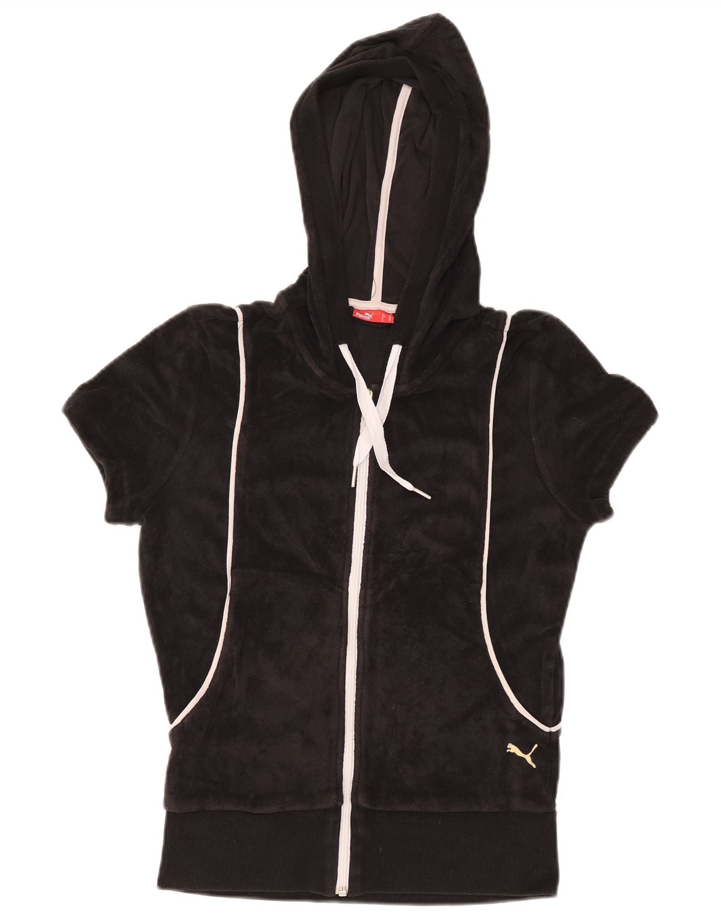 PUMA Felpa con cappuccio e zip in velluto a maniche corte da donna UK 12 Medium Nero