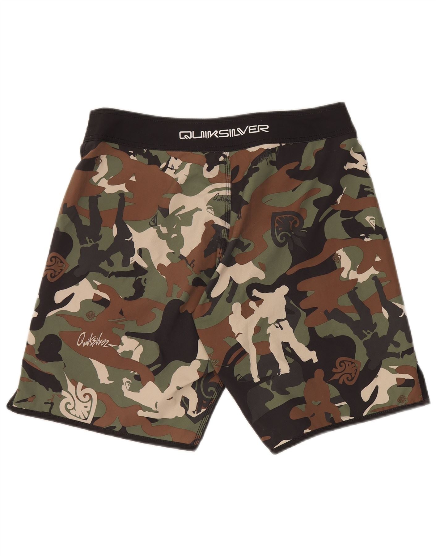 QUIKSILVER Mens Graphic Swimming Shorts Medium Khaki Camouflage Polyester