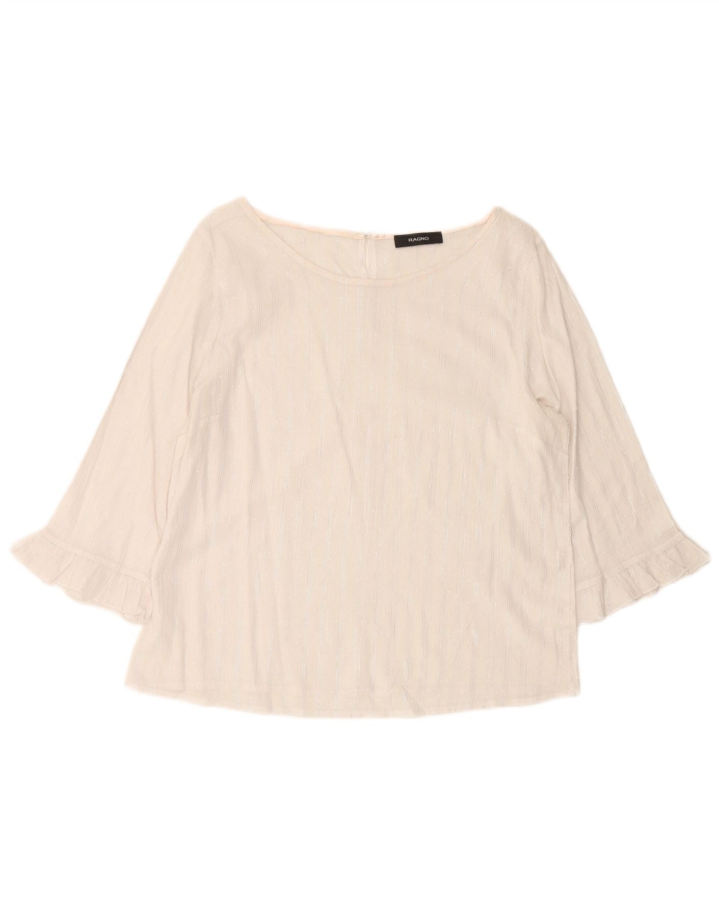 RAGNO Top corto da donna con maniche a 3/4 UK 12 a righe bianche medie