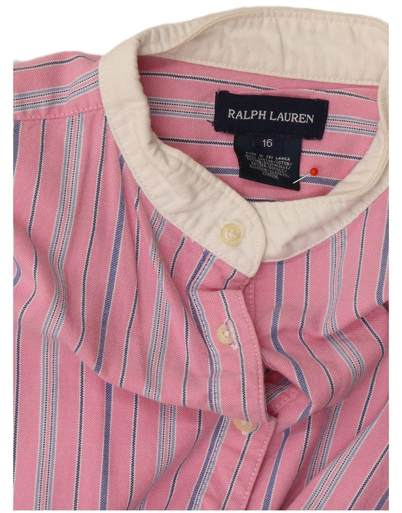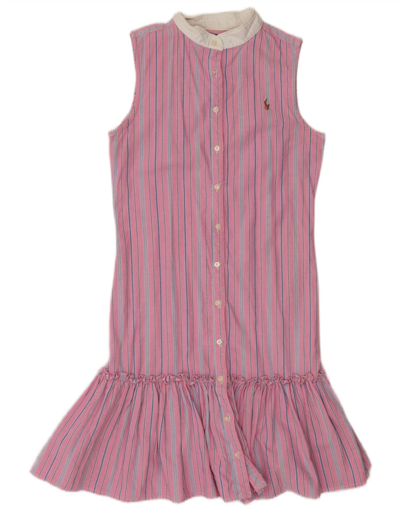 RALPH LAUREN Girls Sleeveless Shirt Dress 15-16 Years Pink Striped Cotton