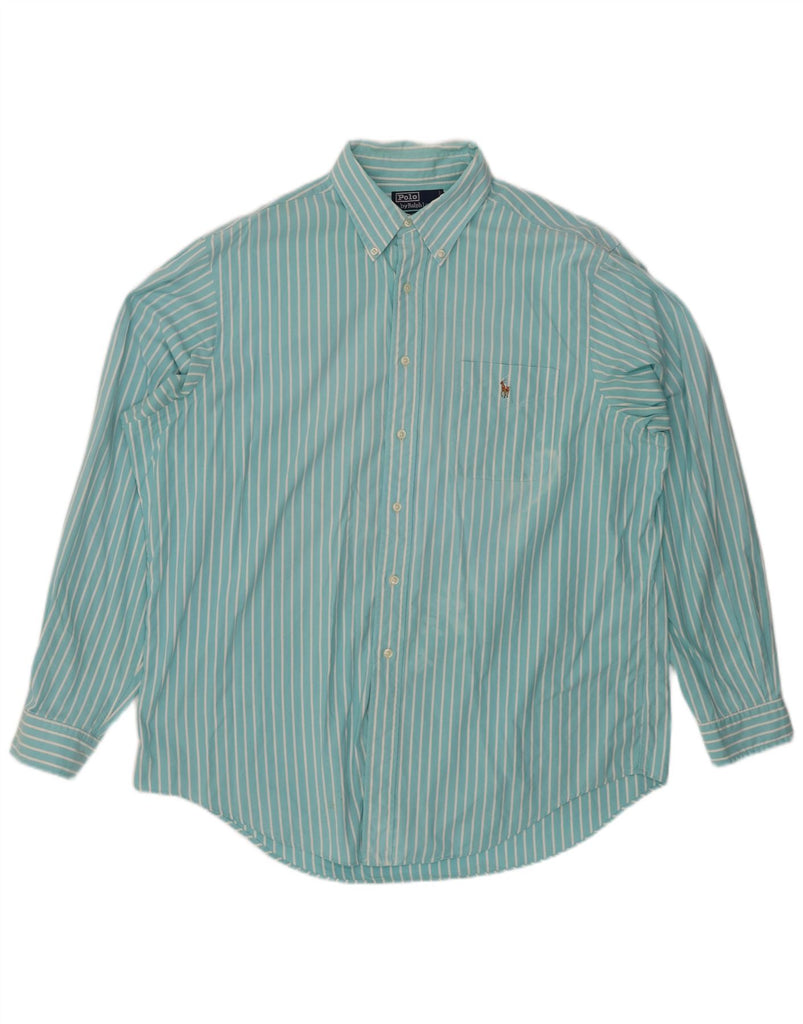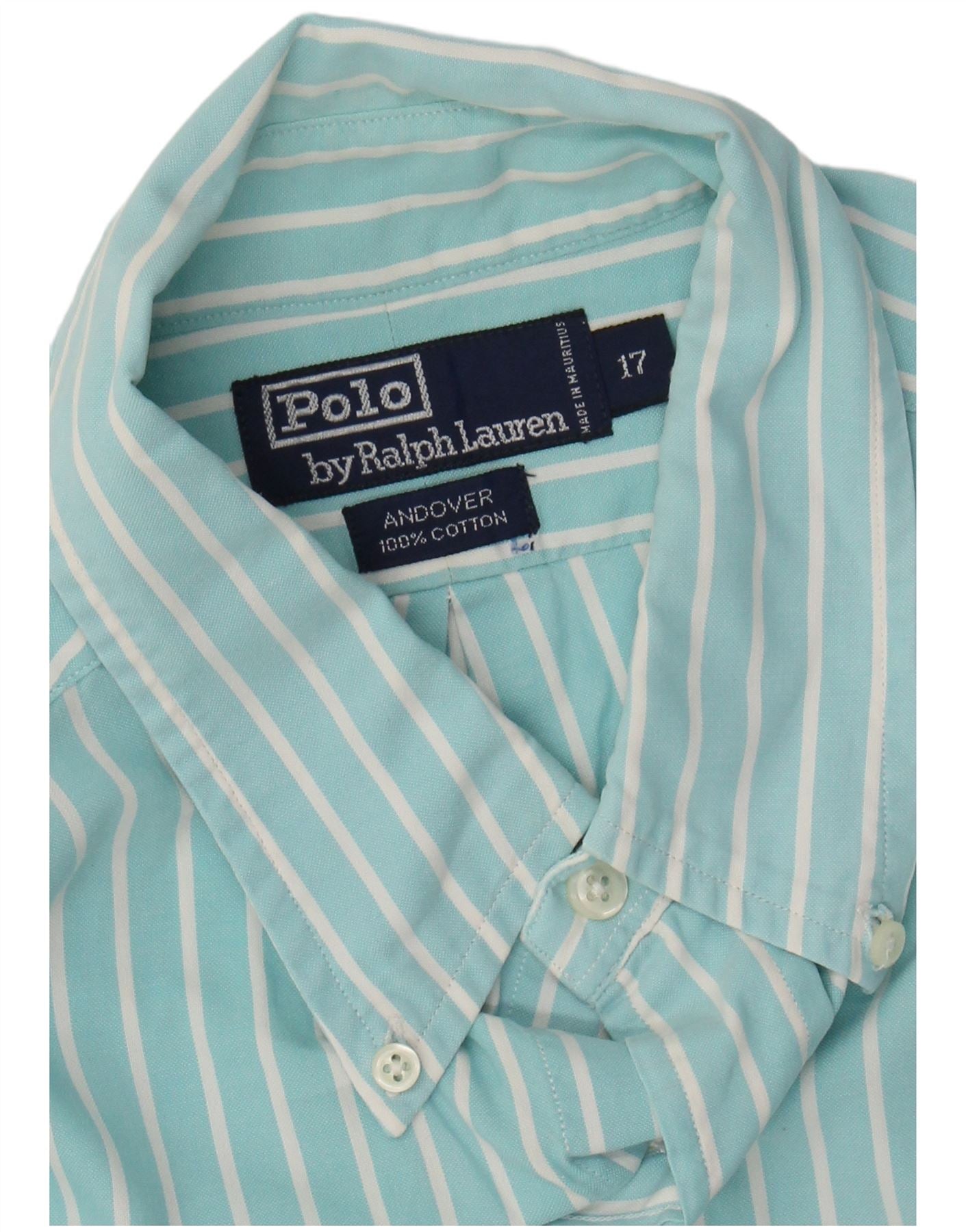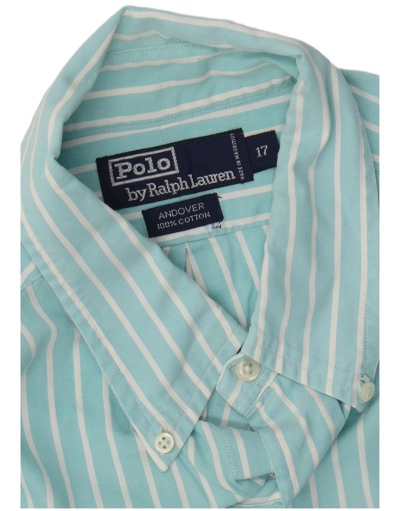 RALPH LAUREN Camicia Andover da uomo taglia 17 XL Cotone a righe turchesi