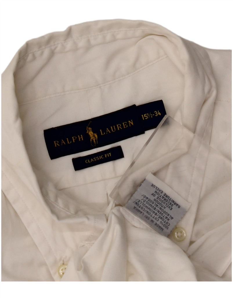 RALPH LAUREN Camicia da uomo vestibilità classica taglia 15 1/2 cotone bianco medio