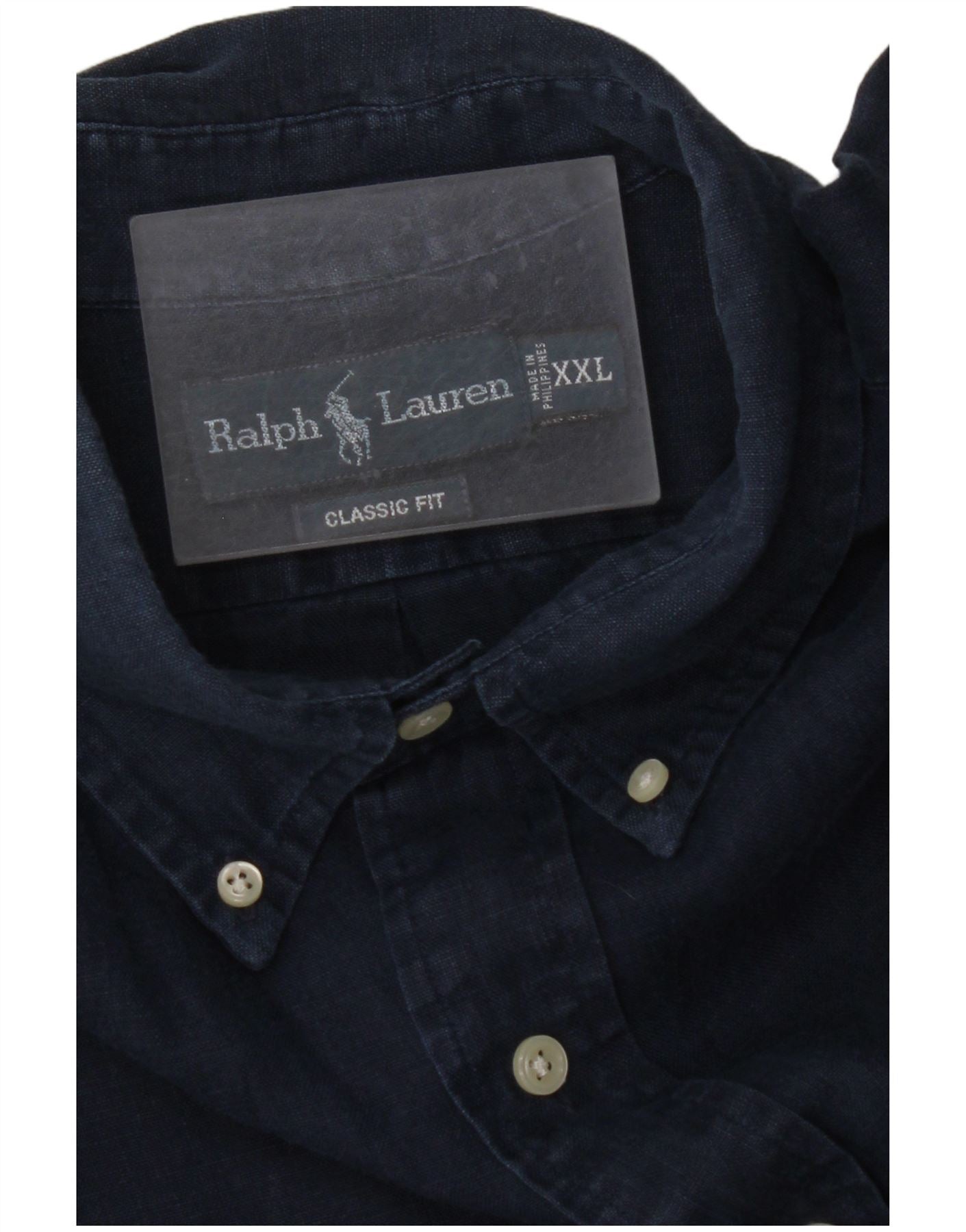RALPH LAUREN Camicia da uomo a maniche corte vestibilità classica 2XL Lino blu navy