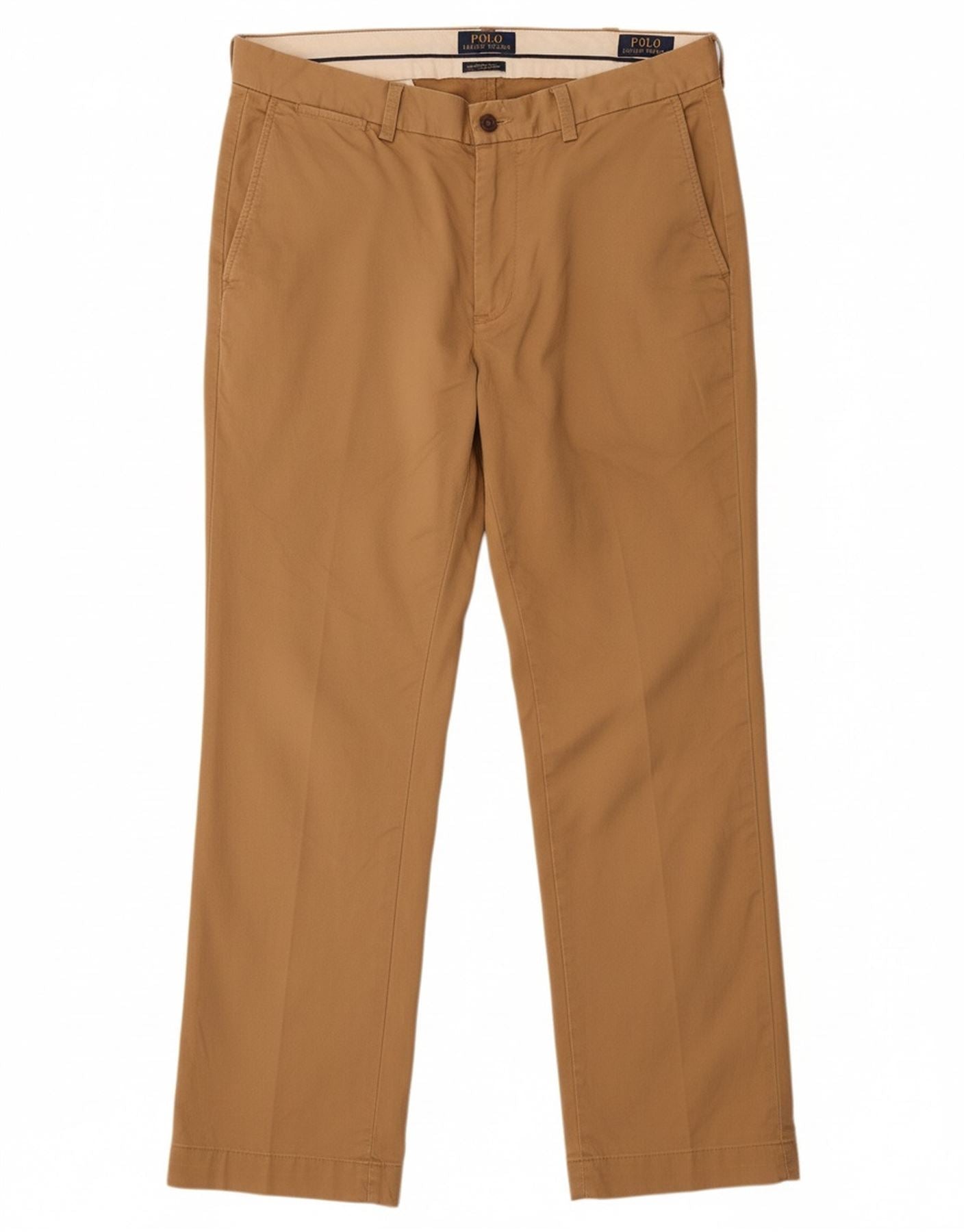 RALPH LAUREN Mens Classic Fit Straight Chino Trousers W34 L30 Khaki Cotton