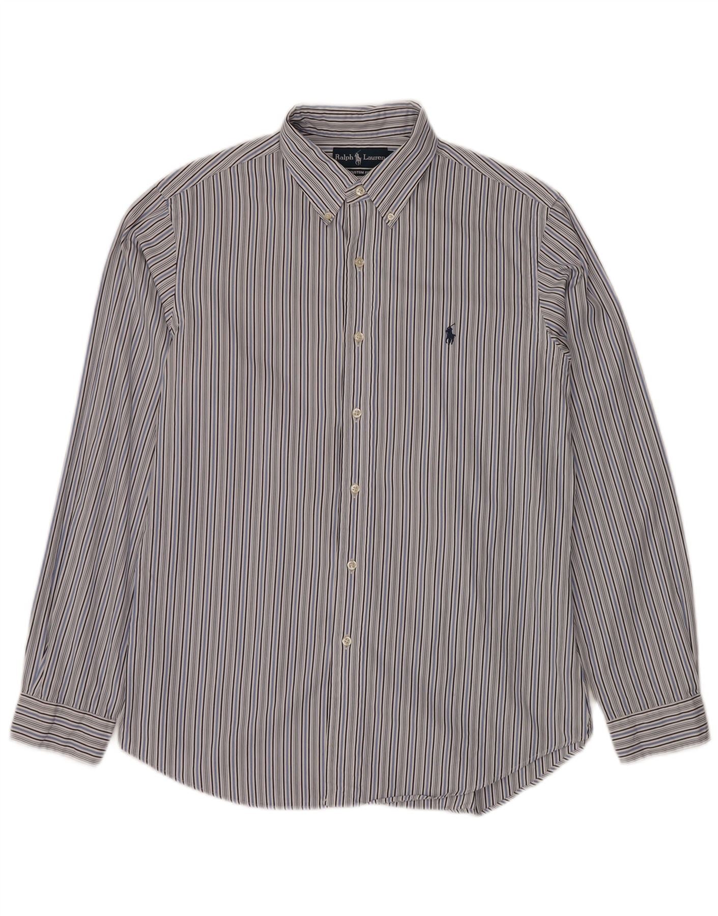 RALPH LAUREN Camicia da uomo su misura taglia 16 grande cotone a righe blu