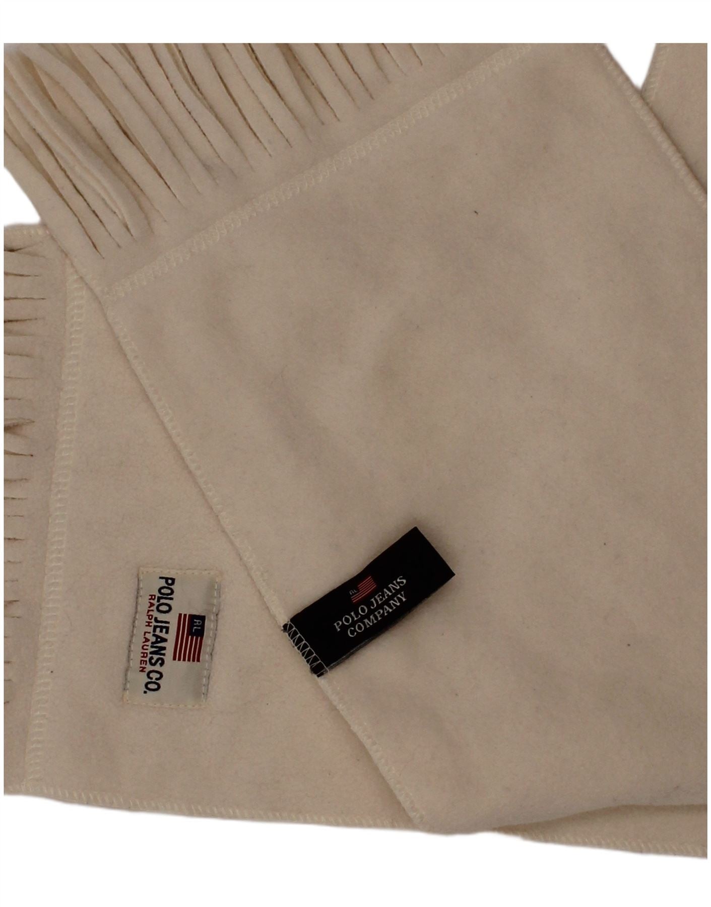 RALPH LAUREN Mens Fleece Rectangle Scarf One Size White Polyester