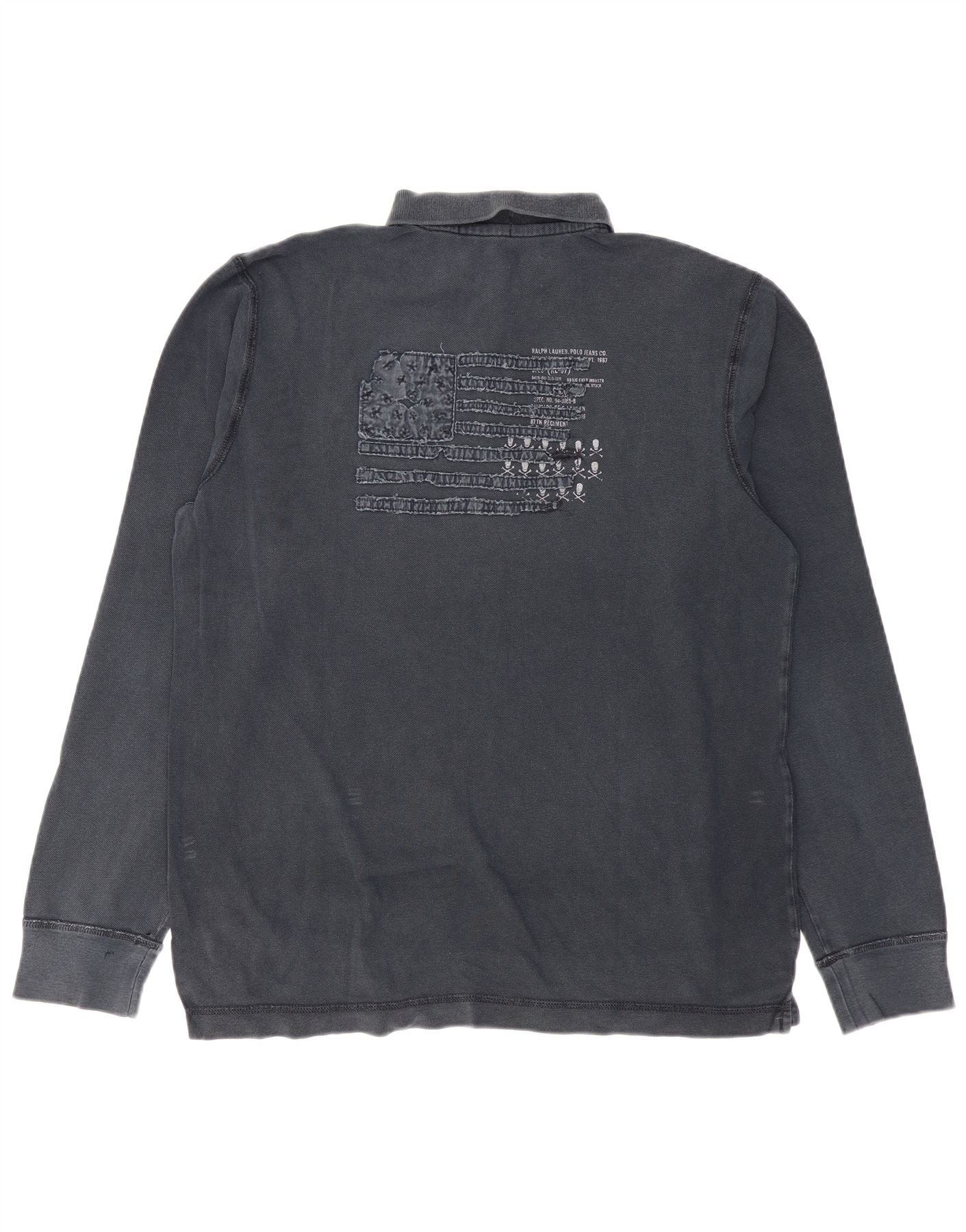 RALPH LAUREN Polo grafica da uomo a maniche lunghe grande blu navy