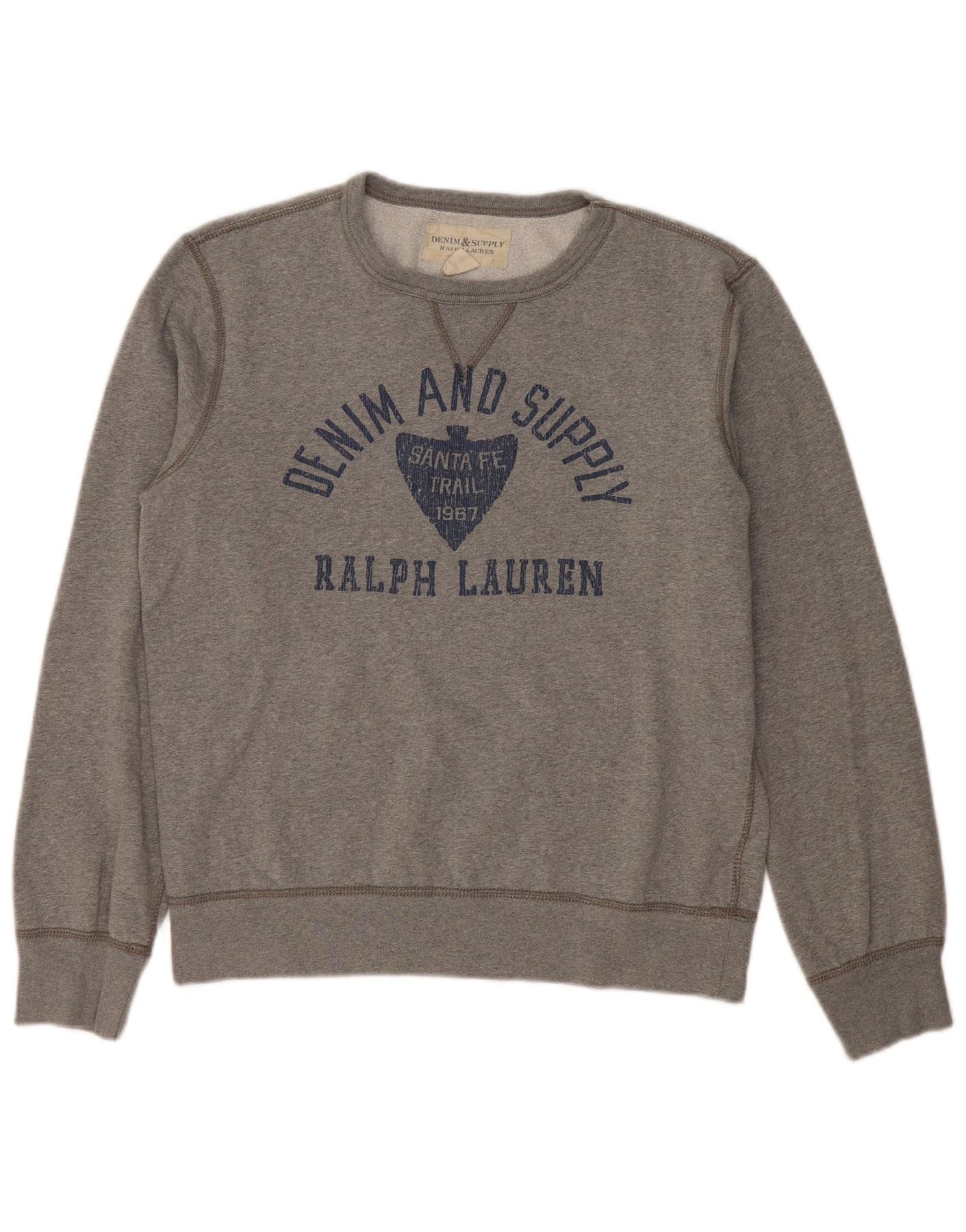 RALPH LAUREN Mens Graphic Sweatshirt Jumper Medium Grey Cotton