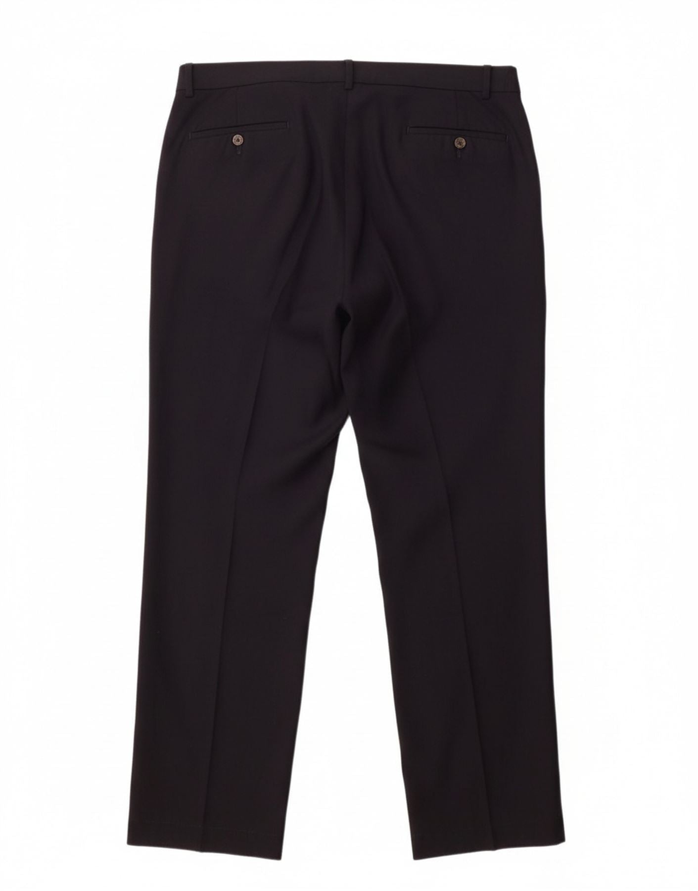 - AI Description: These Ralph Lauren men's suit trousers are crafted from luxurious navy blue 100% wool, offering a refined woven texture. They feature a classic straight leg and a regular fit for timeless appeal. A button closure secures the waist, complemented by elegant pleats. Practical pockets complete the sophisticated tailoring, ensuring a sharp, professional silhouette. Designed for a classic fit, they exude understated style.